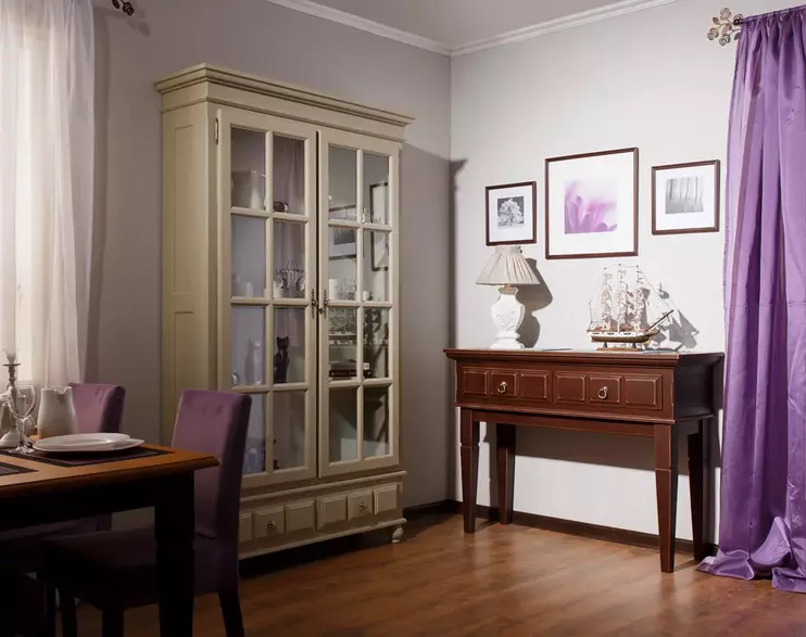 Предметы мебели могут быть окрашены в любой из цветов, предложенных производителем. На ручки и шарниры наносится состаривающее покрытие. Выдвижные ящики снабжены шариковыми направляющими полного выдвижения. Изделия из коллекции «Бьорт» имеют высокие резные ножки, мебель выглядит легкой и не перегружает интерьер.