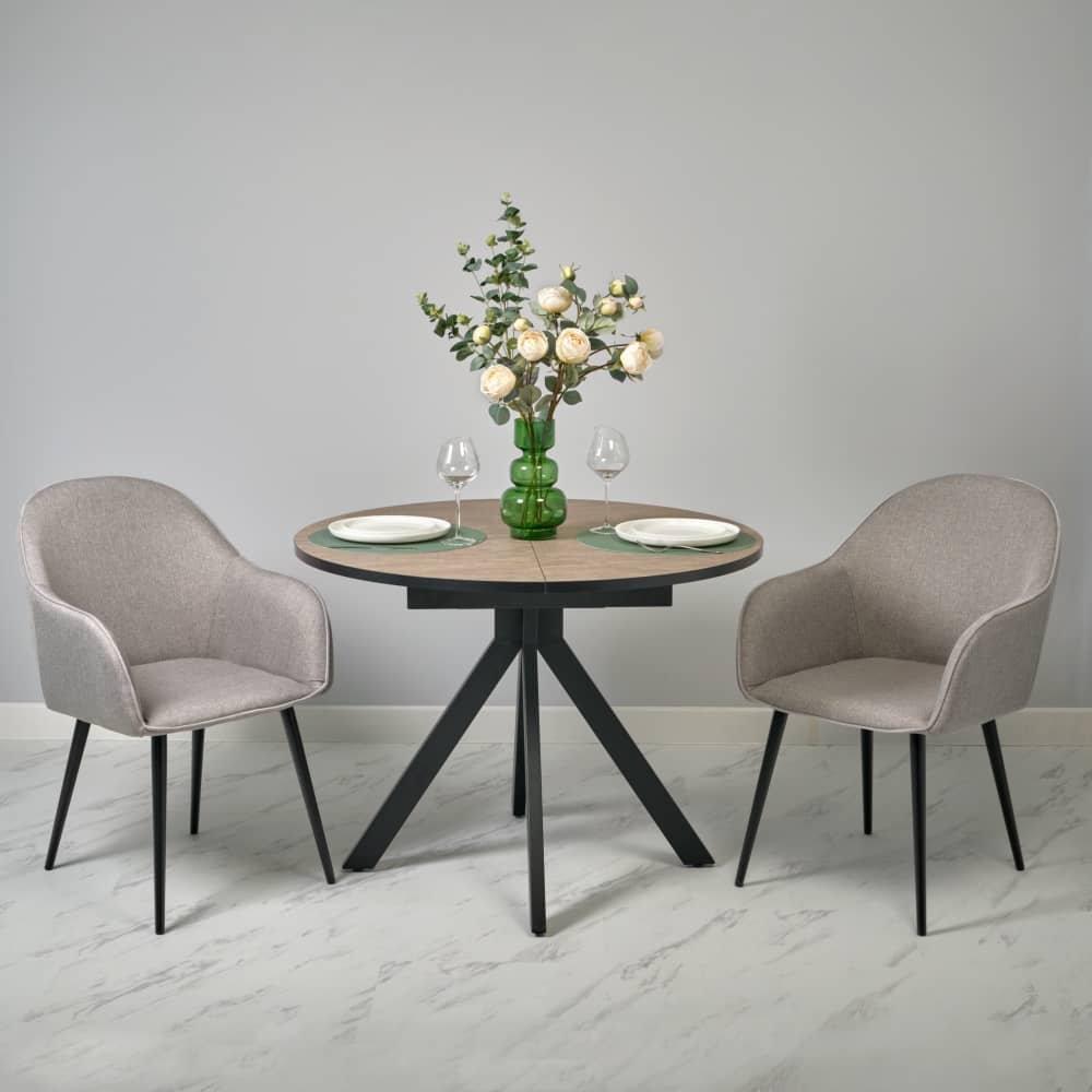 Хотите купить кресло? Не спешите! Стул Frida такой же мягкий и удобный, как кресло и тоже имеет подлокотники. При этом он намного легче, мобильнее и занимает меньше места. Отличительная особенность серии в использовании удобных подлокотников и мягкой рогожки для обивки. Нейтральный бежевый цвет подчеркнет классический интерьер. Сочетание бежевого и черного цветов — это классика, в которой стулья для кухни или гостиной подчеркнут строгость и изысканность интерьера. А металлические ножки будут отлично сочетаться с мебелью с аналогичными ножками или фурнитурой.