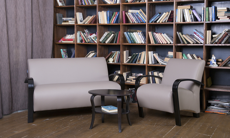 Для изготовления каркасов мебели применяется натуральный долговечный материал – гнутоклееный березовый шпон. Для обивки используются ткани разных цветов или натуральная кожа. Для покрытия применяются итальянские лаки. Мебель проходит испытания на прочность под нагрузкой 120 кг.
