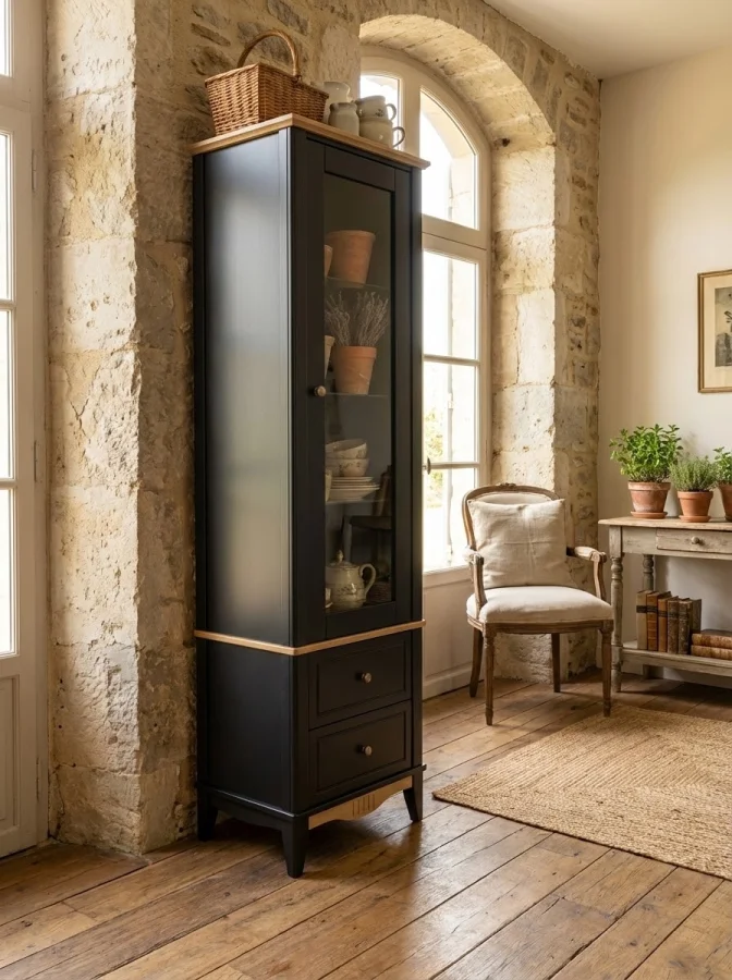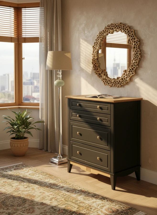 Корпуса и фасады изготавливают из массива сосны, задние стенки и днища ящиков – из ДВП. Изделия окрашивают в цвета «серый 7046/антик 24», «белый воск/антик 24» и «блэк/антик 24». Выдвижные ящики оснащают направляющими частичного выдвижения, без доводчиков. Дверные петли Hettich имеют доводчики для плавного закрывания. Гарантия на изделия составляет 24 месяца.