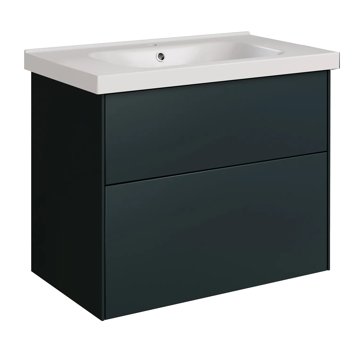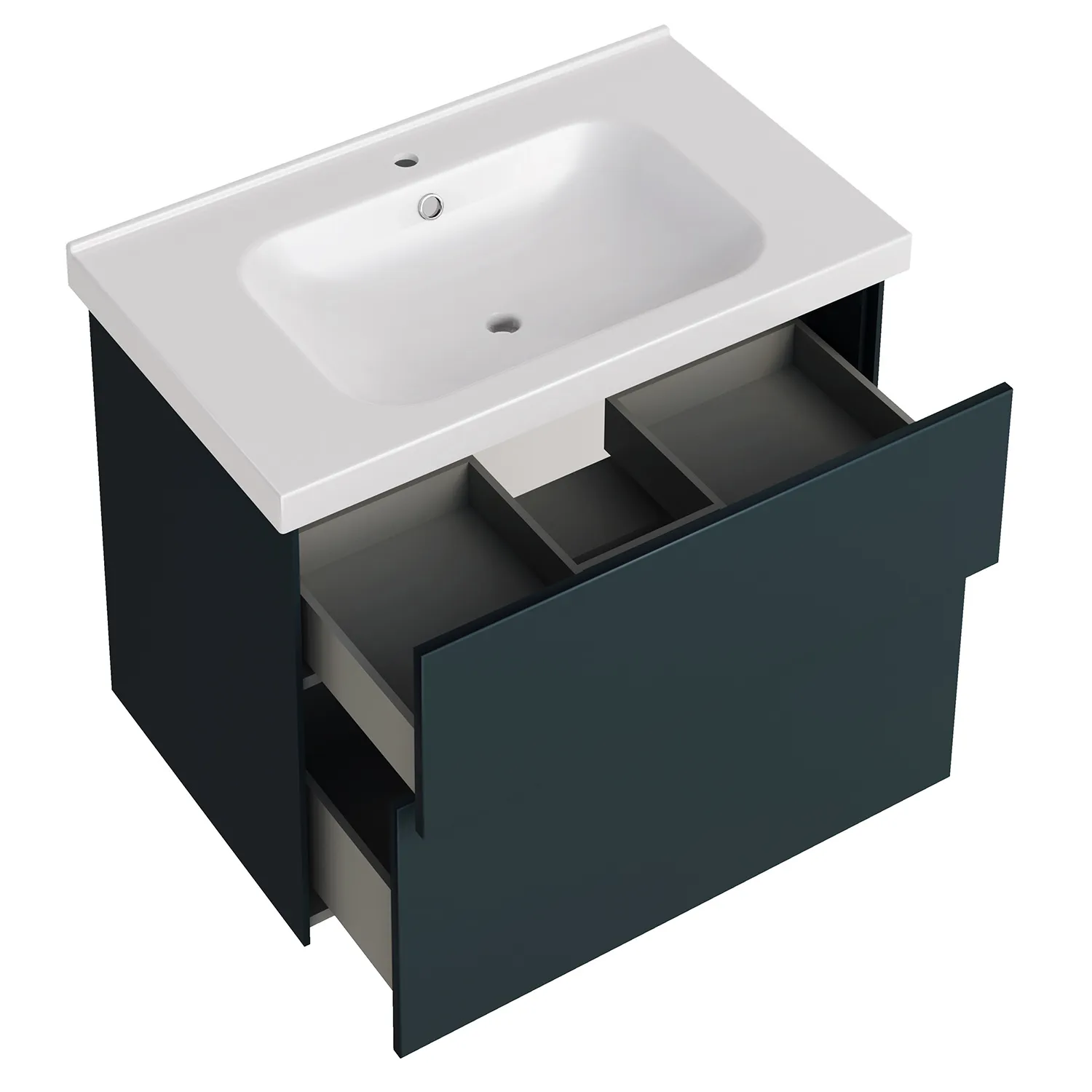 Предметы изготовлены из МДФ с матовым покрытием Soft Touch, окрашены в изумрудный цвет. В ящиках предусмотрено два отделения для разных предметов. Дверцы и ящики открываются по технологии Tip-on, нажатием на фасад. Ящики выдвигаются на шариковых направляющих с доводчиками, дверные петли также имеют механизм плавного доведения.