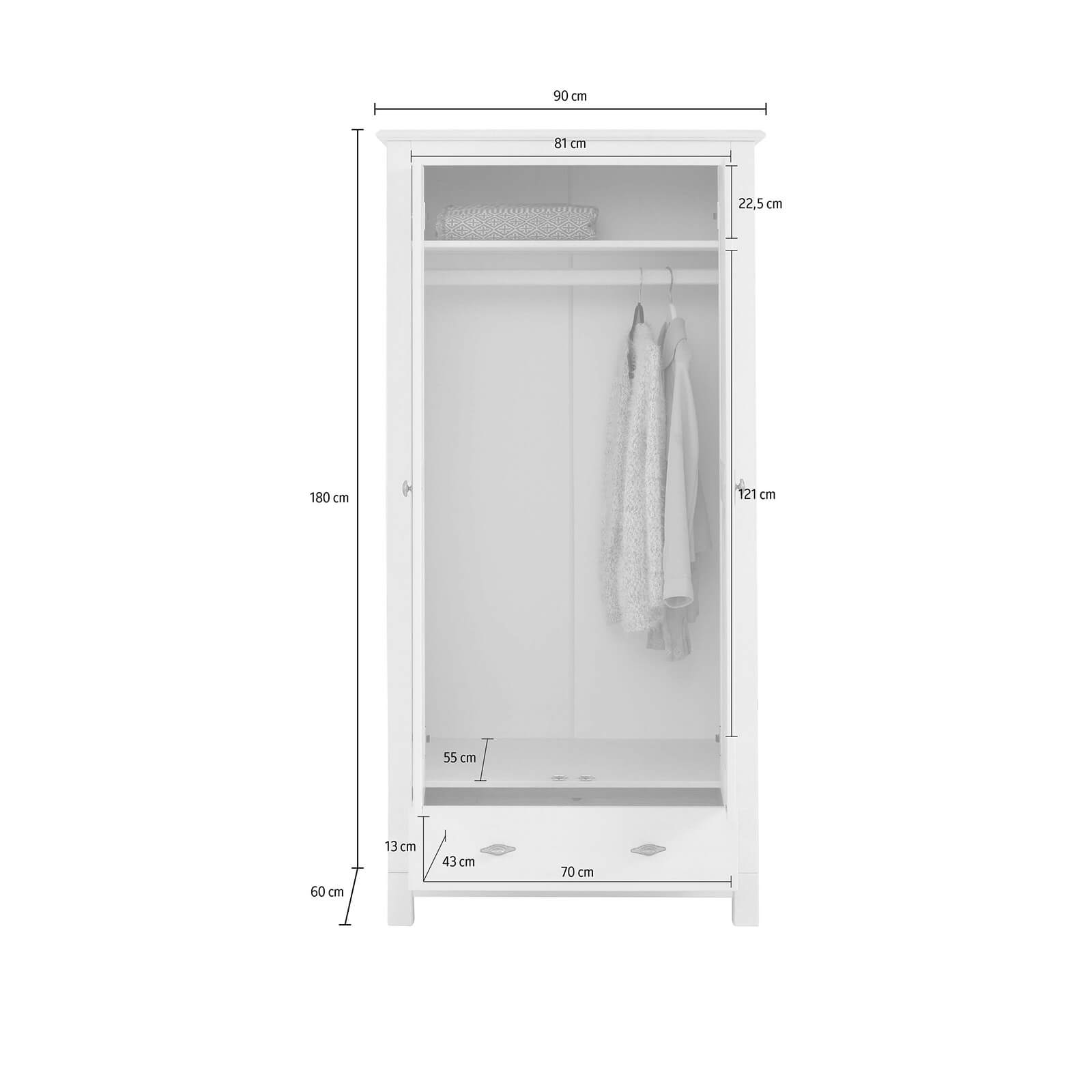 Двухдверный шкаф "Рауна" 21-180 (цвет белый воск УКВ) 900 х 600 х 1800 мм из массива сосны.