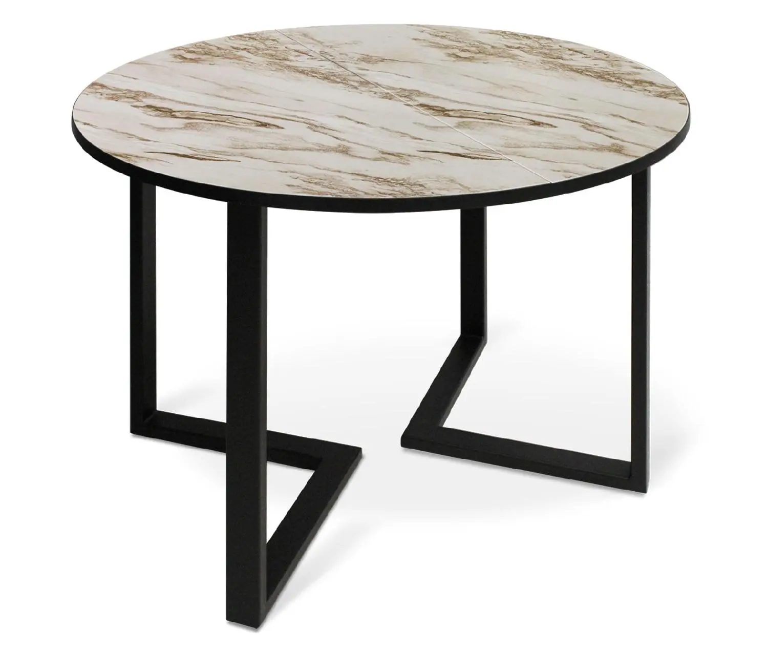 Необычный дизайн ножек не только добавляет в интерьер ломаных линий, но и позволяет сэкономить пространство для ног. Выпуклый рисунок натурального камня на столешнице отлично дополнит классический интерьер обеденной зоны.