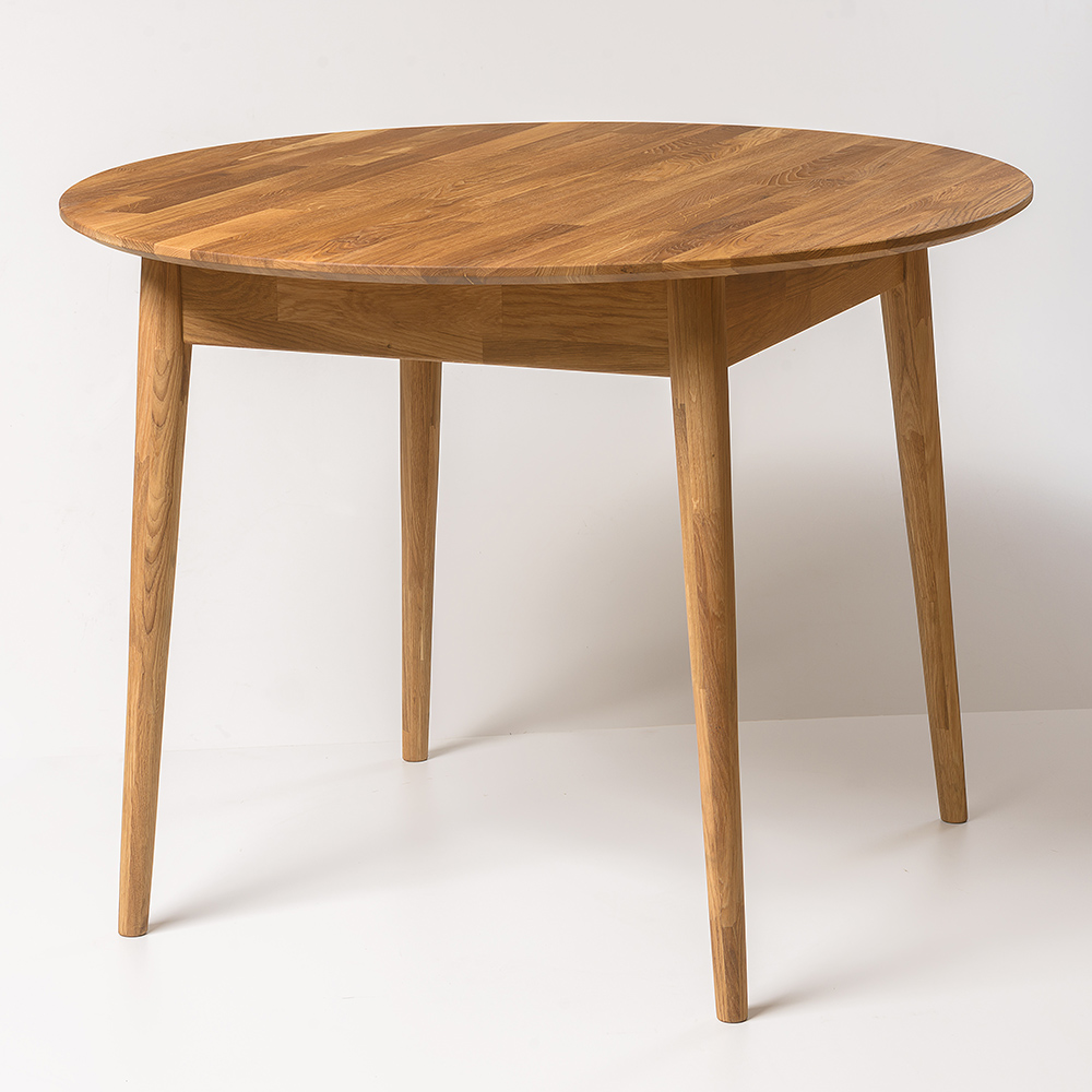 Круглый обеденный стол «Сканди 3 D1100» в скандинавском стиле изготавливается из долговечного природного материала – массива дуба. Стол отличается простым и стильным дизайном, а, главное, вместительностью – за ним могут свободно разместиться до 6 человек.