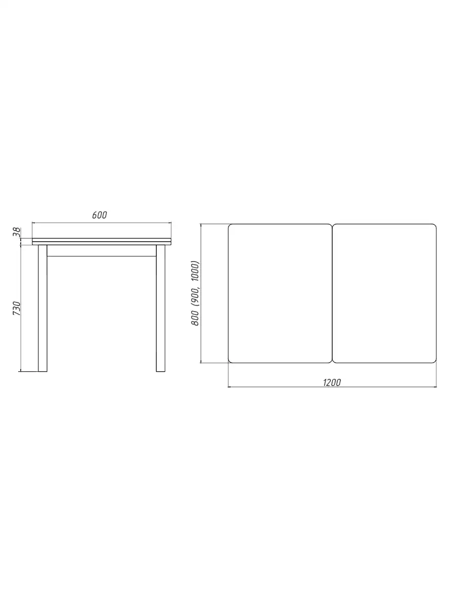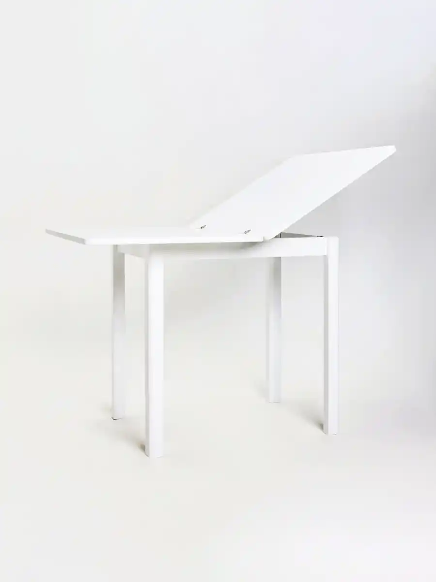 Стол раскладывается в два раза, что позволяет увеличить рабочую поверхность. Он изящен, практичен и удобен в использовании. Размеры стола представлены в трёх вариантах: 800 x 600 (1200) x 750 мм, 900 x 600 (1200) x 750 мм и 1000 x 600 (1200) x 750 мм.
