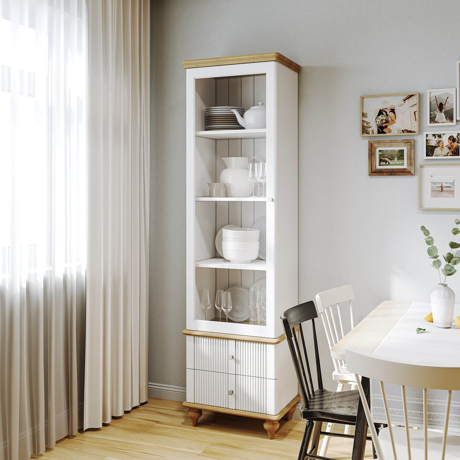 Представляем шкаф для посуды «Рандеву» 12 из массива сосны и стекла.