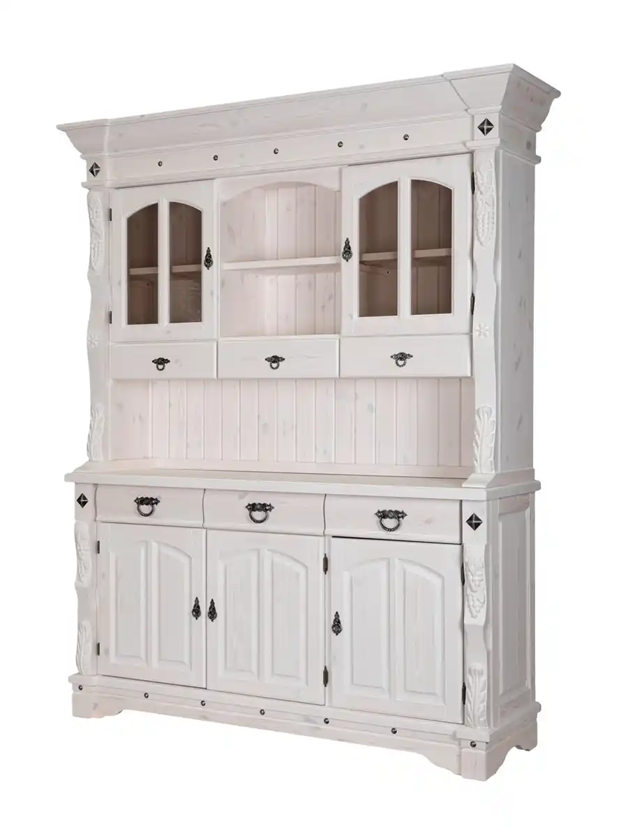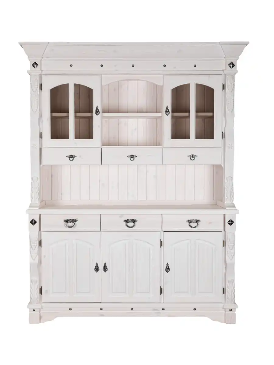 Буфет «Викинг GL-05/1» — это воплощение уюта провинциального французского дома. Созданный для гостиной или столовой, он станет не просто местом для хранения посуды, а настоящим украшением интерьера. Сочетание натурального дерева, резных узоров и кованых элементов придает мебели благородный вид и атмосферу тепла.