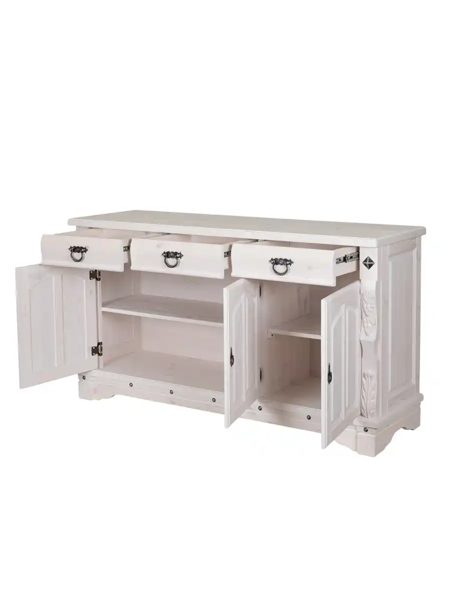 Комод «Викинг GL-05/1» — это особое украшение для вашей кухни или столовой. Выполненный из массива сосны, он подчеркивает аутентичный стиль загородного дома благодаря уникальным резным элементам с гроздьями винограда. Поверхность обработана воском, что придает мебели благородный вид и приятную текстуру. Оригинальный дизайн создан с помощью специально созданных потертостей, следов древоточцев и изящных вставок на фасадах, что делает каждый экземпляр неповторимым.