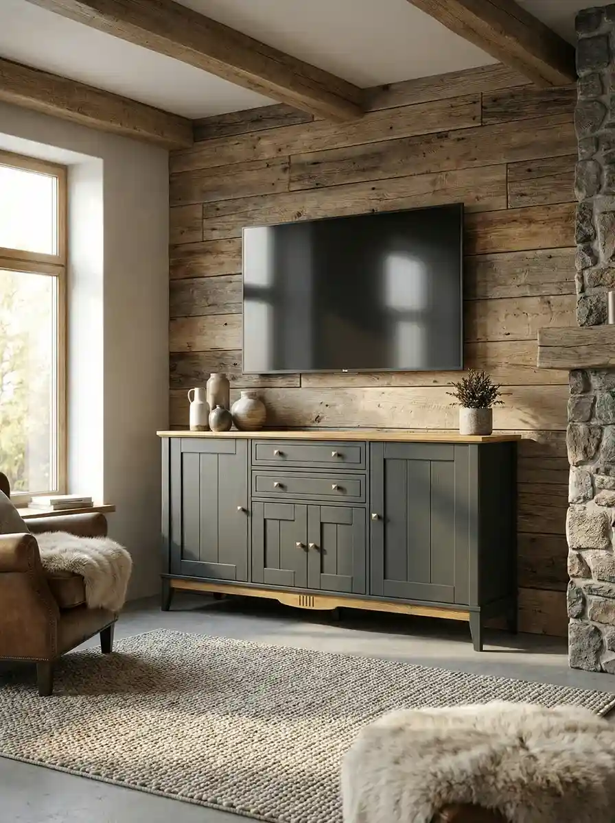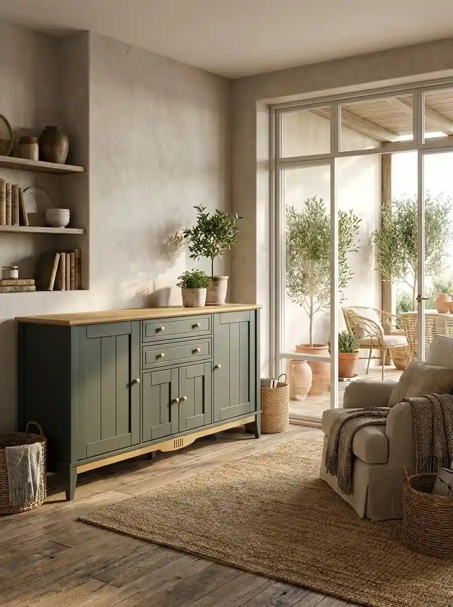 У этой модели комода четыре распашные дверцы и два выдвижных ящика. Донья ящиков и задняя стенка изготовлены из прочного оргалита древесного оттенка, стенки из массива сосны, окрашены в цвет корпуса. Для ящиков предусмотрены шариковые направляющие частичного выдвижения с доводчиками. Дверцы навешиваются на петлях с доводчиками, закрываются без усилий и бесшумно. Высота от пола до нижнего края планки 12 см, уборку под тумбой можно делать с помощью робота-пылесоса.