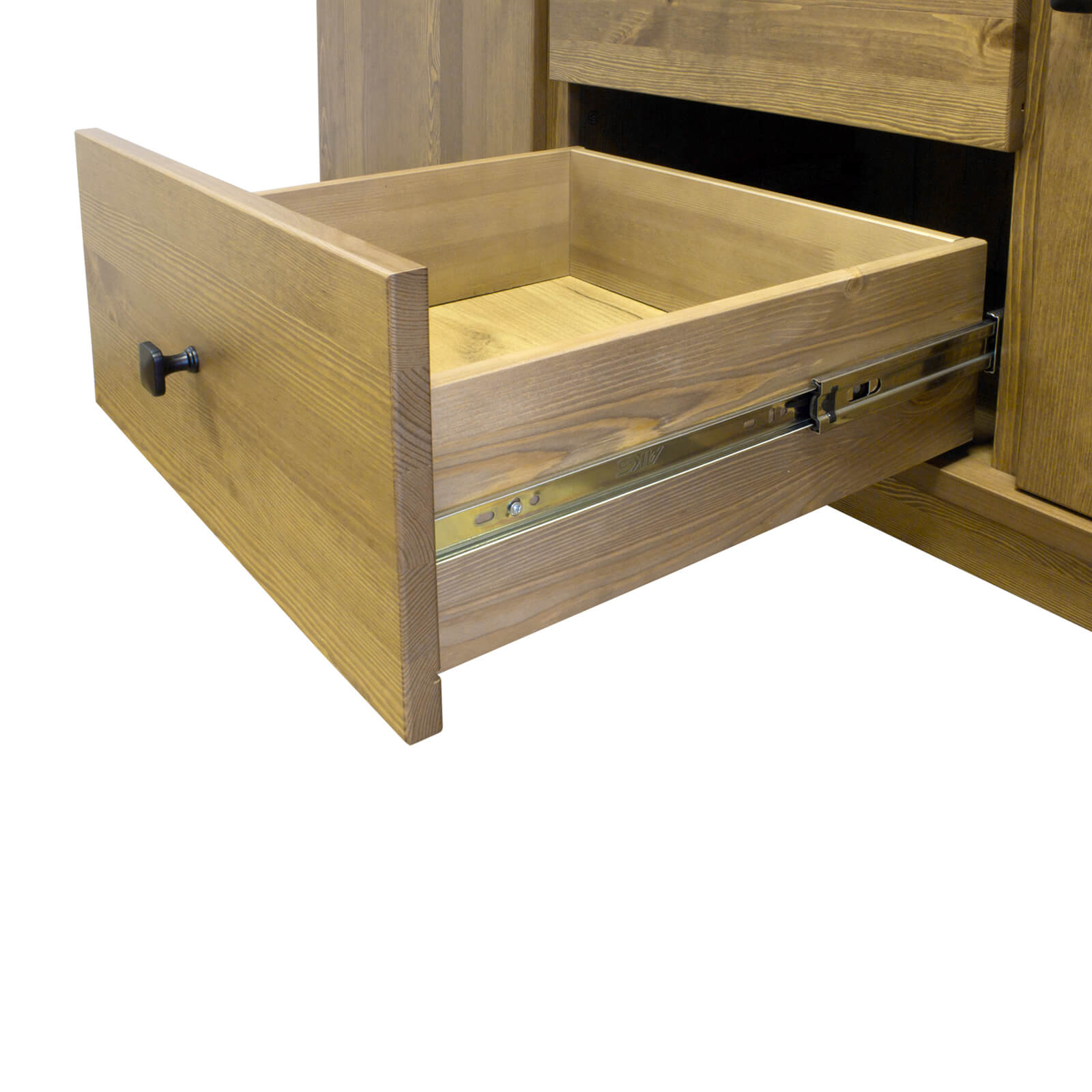 Представляем вашему вниманию тумбу «Бон Вояж», которая станет прекрасным дополнением к интерьеру вашего дома. Эта модель выполнена из массива сосны и представляет собой высокий комод с тремя ящиками по середине и двумя полками за распашными дверями. Выдвижные ящики полного выдвижения на телескопических направляющих обеспечивают удобство использования и долговечность конструкции.