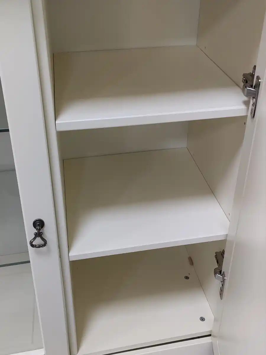 - Отделение с фасадом со стеклом → за ним 2 стеклянные полки на равном расстоянии