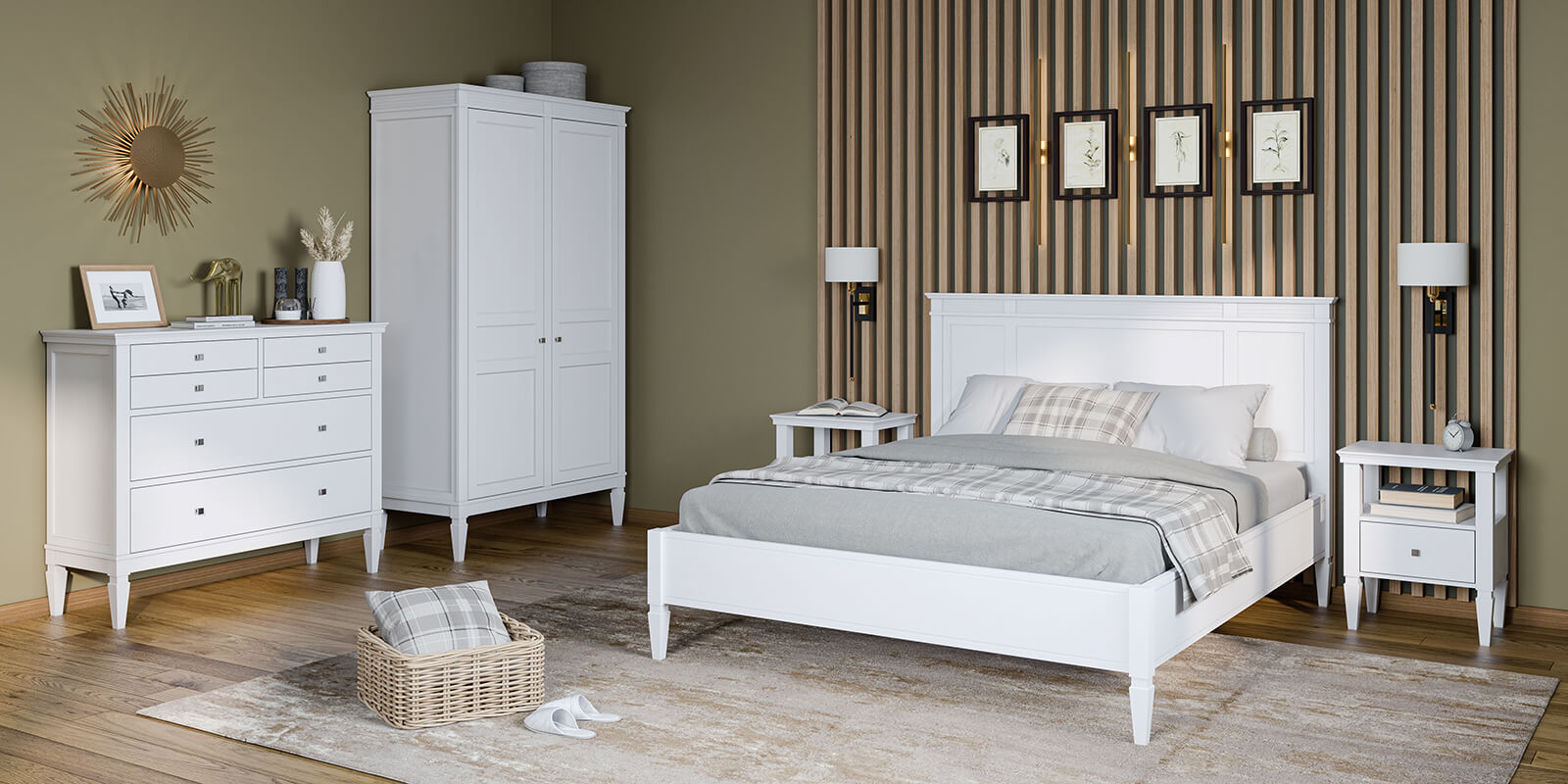 Стильная белая кровать “Ольса” станет украшением вашей спальни.