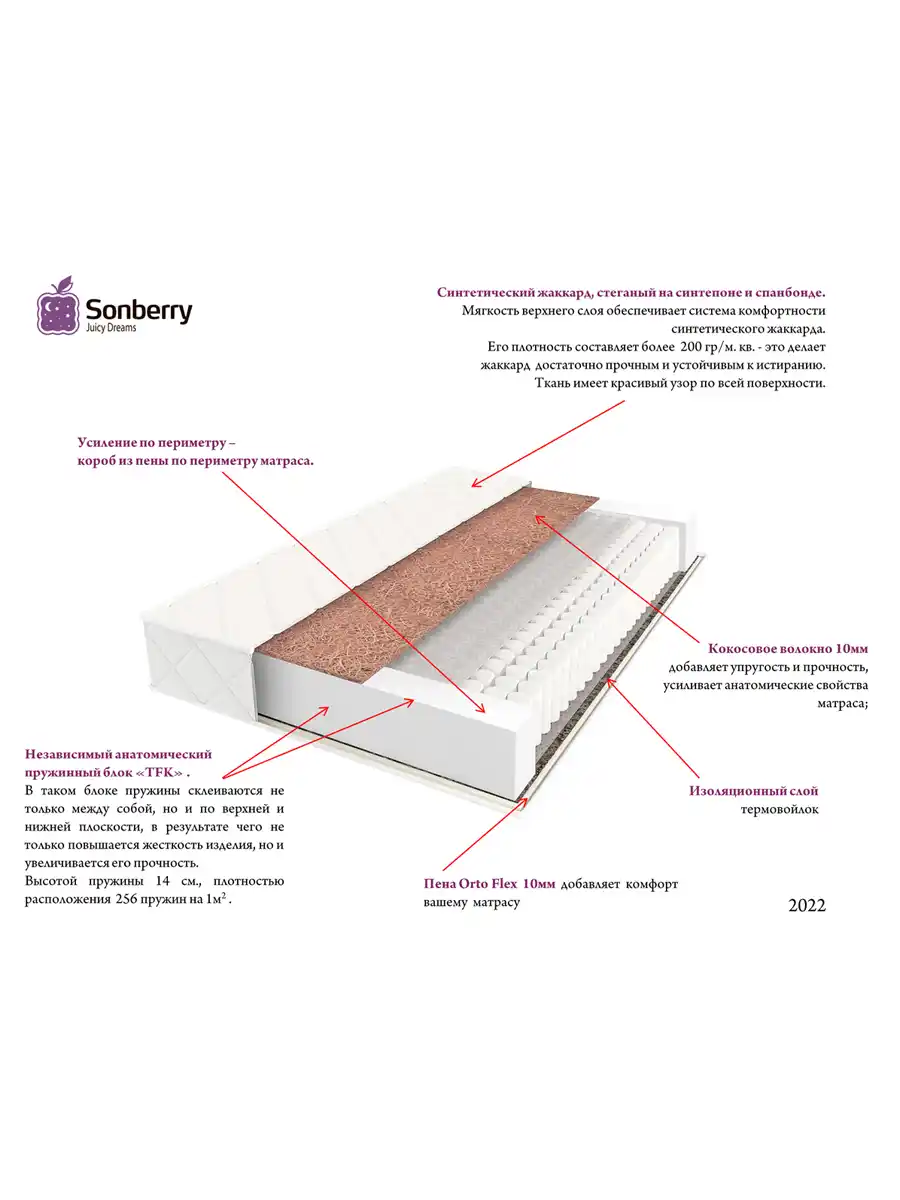 более упругая (выше средней жесткости) – сторона на основе кокосового полотна усиливает анатомический эффект пружинного блока.