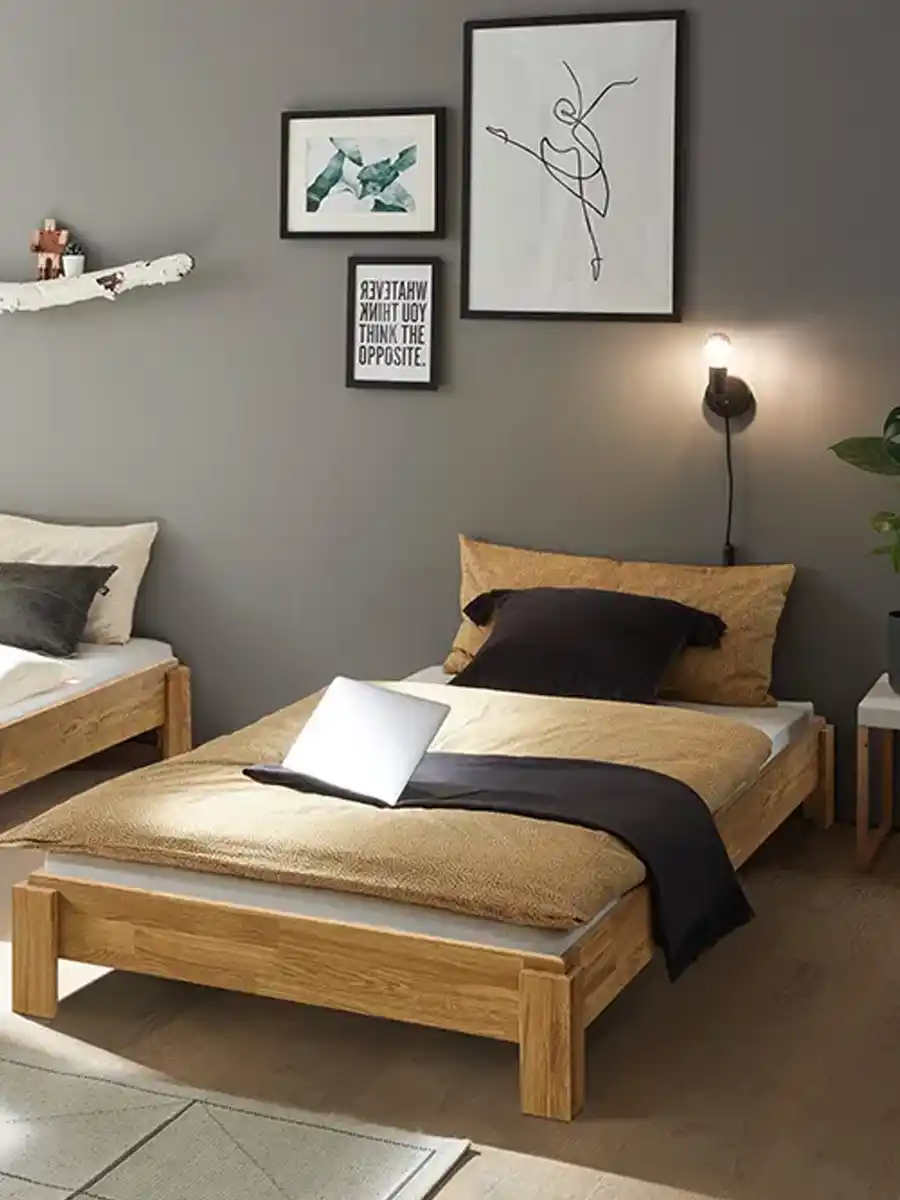 Односпальная кровать «Дуби» — это идеальное сочетание стиля, комфорта и надёжности. Каркас кровати изготовлен из натурального дерева – массива дуба. Кровать имеет предельно простую конструкцию, без изголовья и изножья. Из шести вариантов отделки можно выбрать тот, который лучше всего подойдёт к вашему интерьеру.