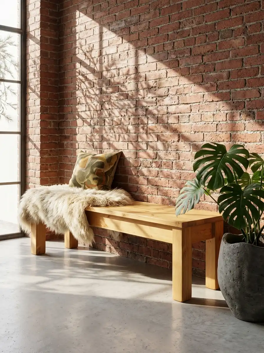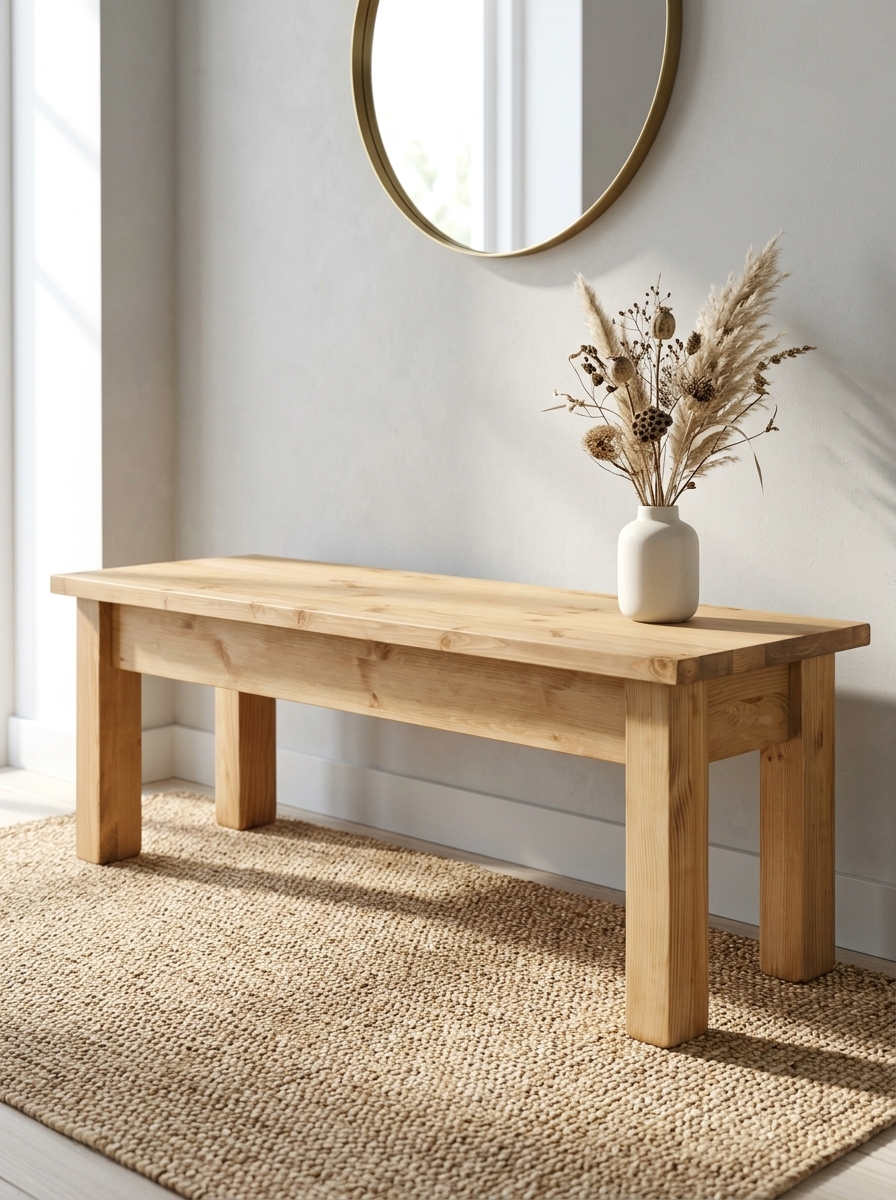 Скамья изготовлена из массива сосны.