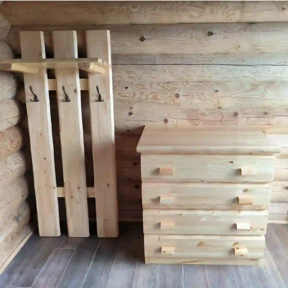 Мебель полностью изготавливается из высококачественного массива сосны, толщина мебельного щита 40 мм. В большинстве изделий детали соединяются без металлических креплений. Ящики выдвигаются и задвигаются на роликовых направляющих, без доводчиков. На ящиках удобные деревянные ручки.