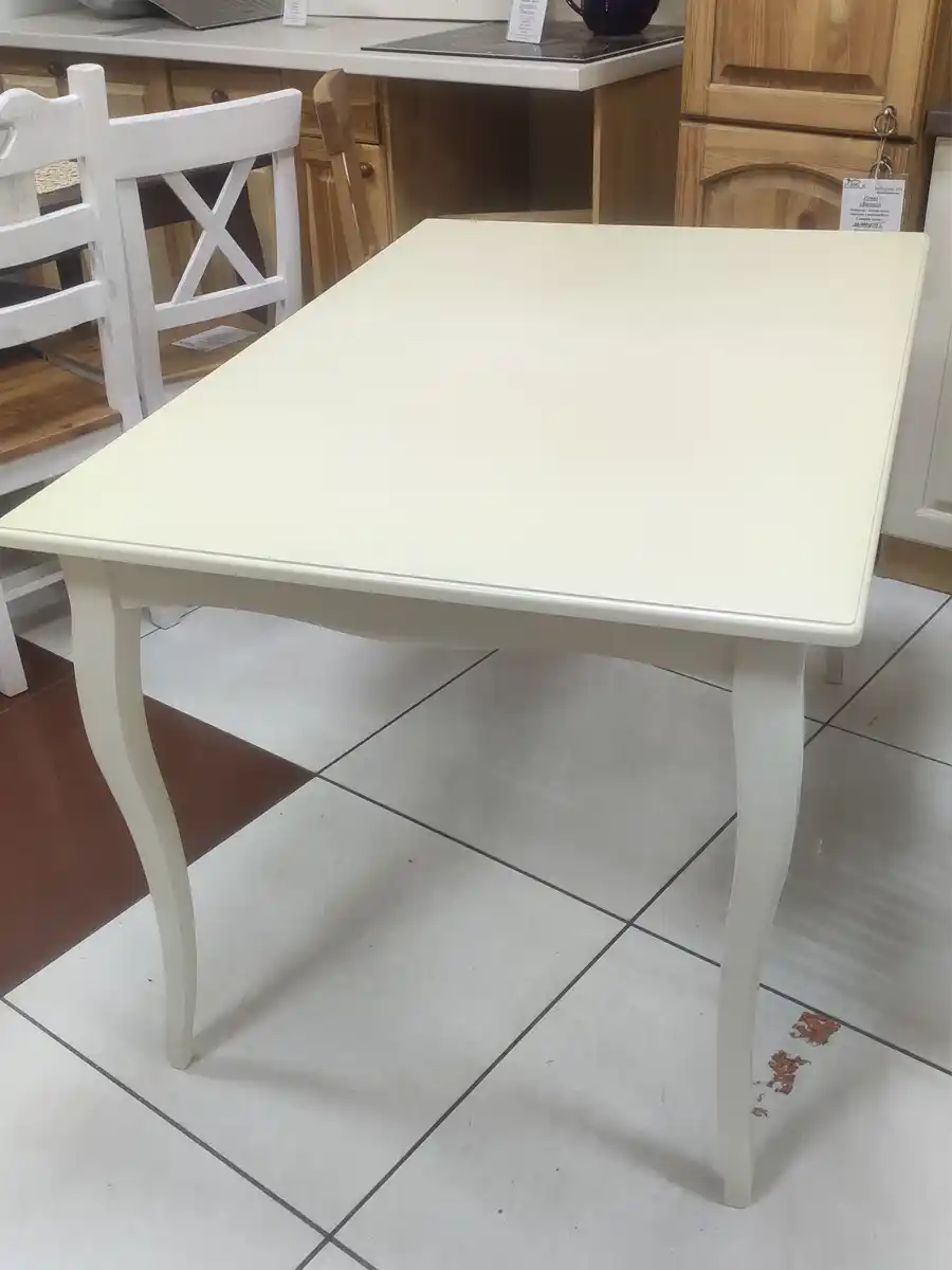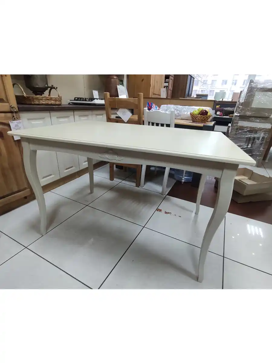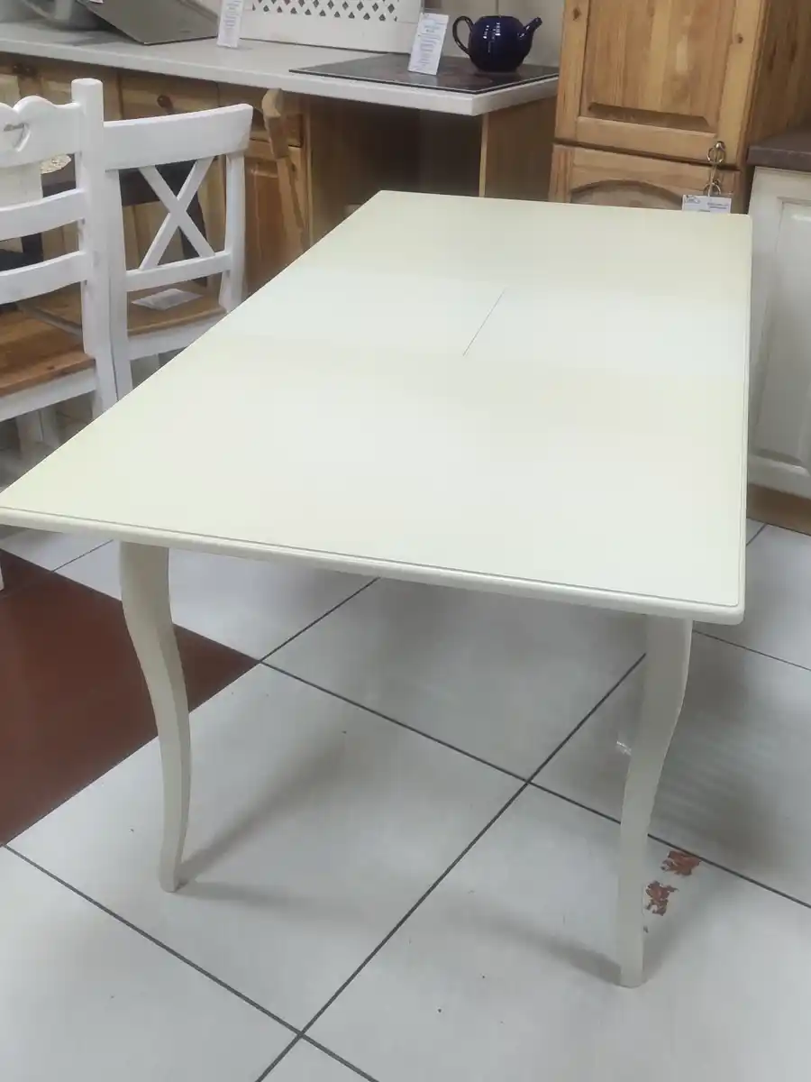 Стол белый прямоугольный. Продаем из зала в связи со сменой экспозиции стол обеденный раскладной "Империя С-17А"
