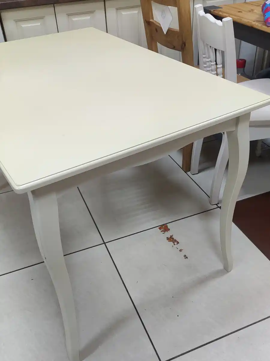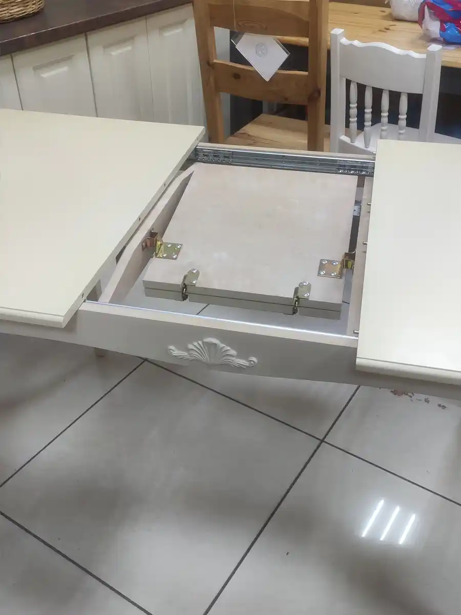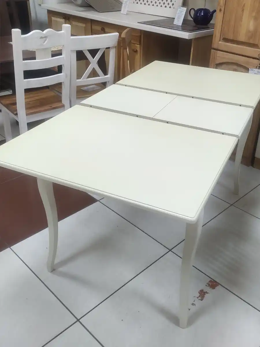 Стол белый прямоугольный. Продаем из зала в связи со сменой экспозиции стол обеденный раскладной "Империя С-17А"