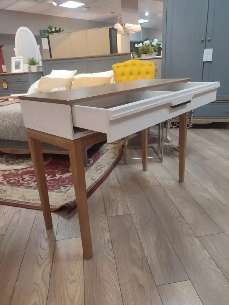 Туалетный стол (консоль) 01 «Гранада» изготовлен полностью из массива сосны. Он отлично дополнит интерьер спальни, прихожей или гостиной в разных стилях: скандинавском, классическом, винтаж, прованс, лофт.