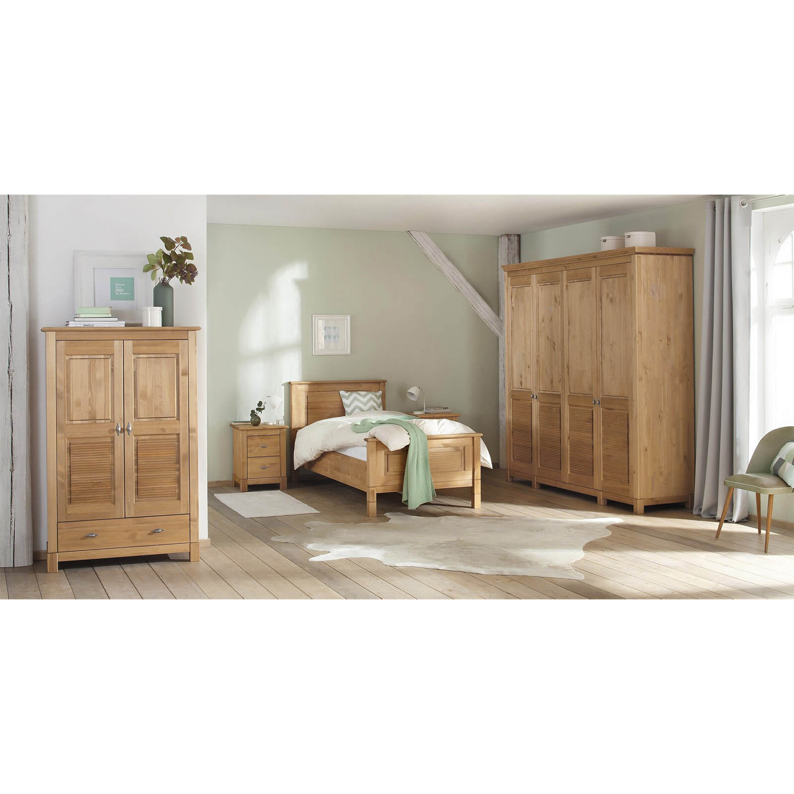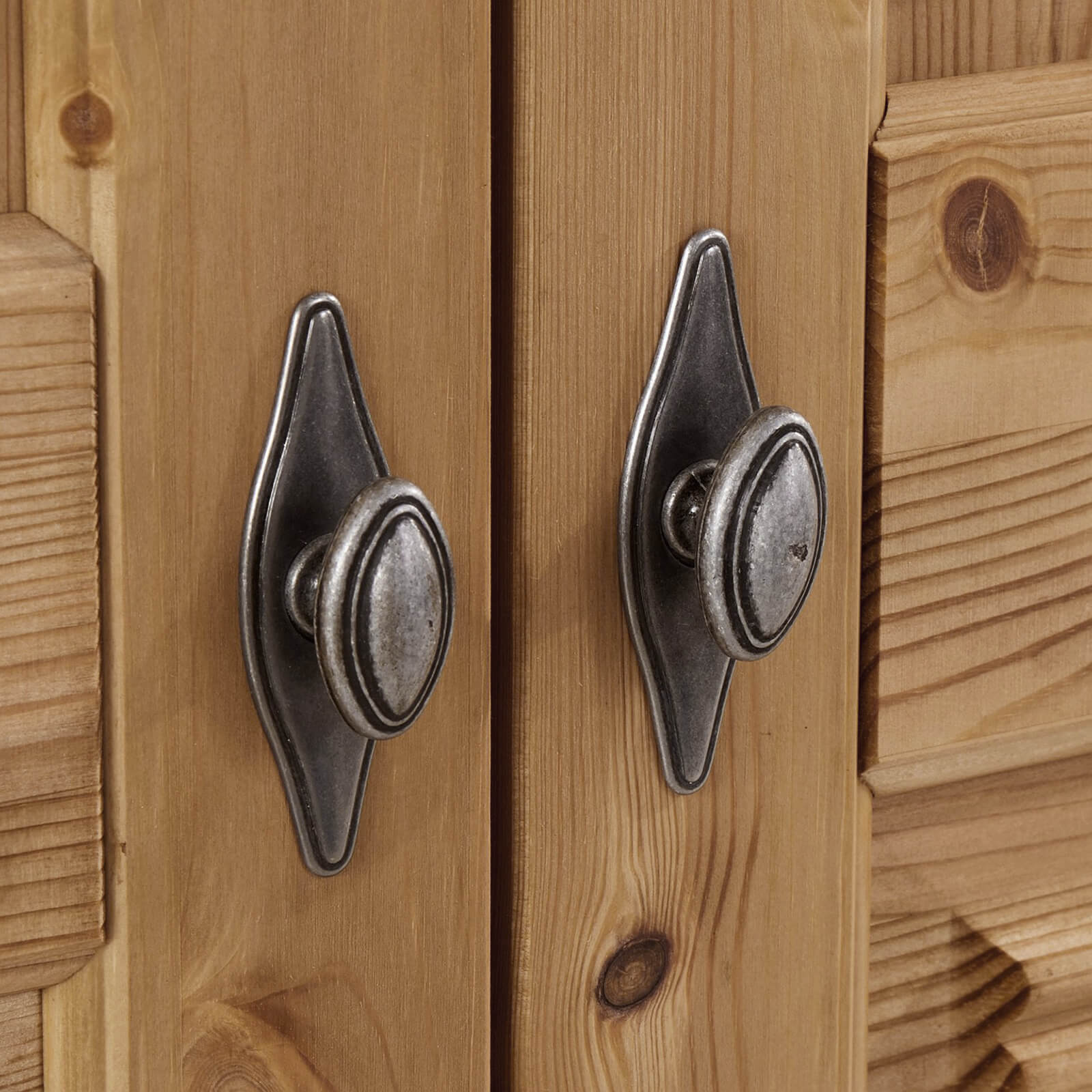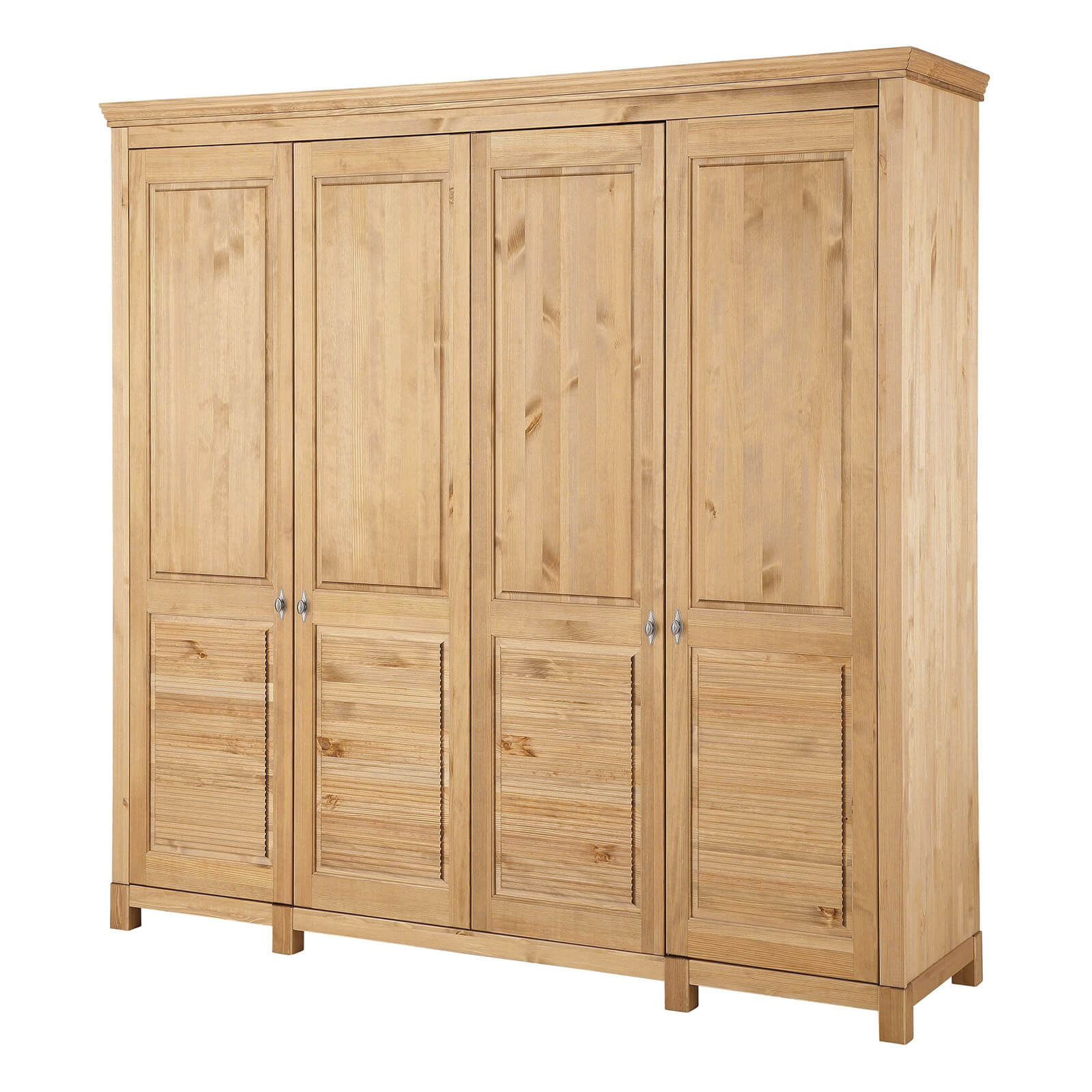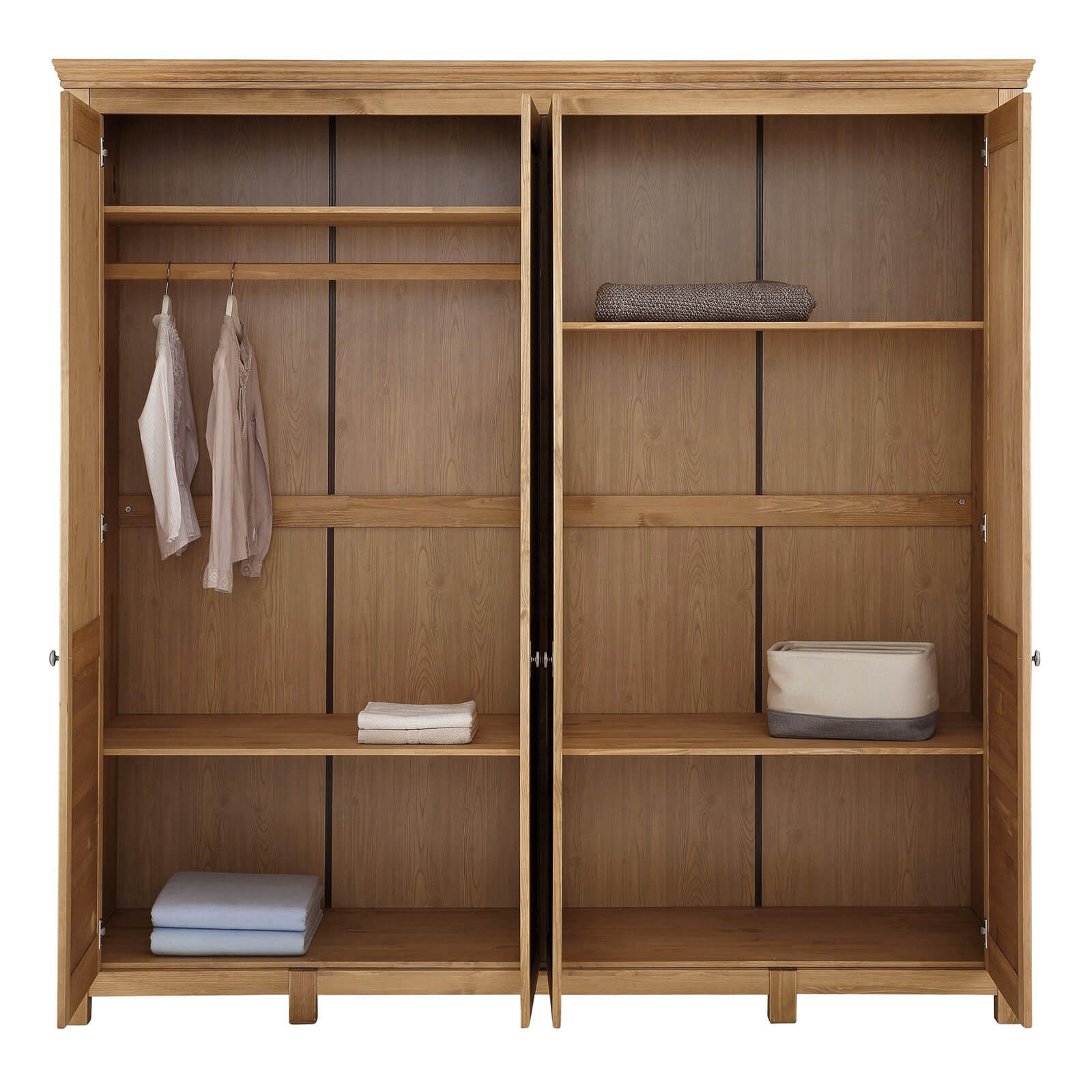 За четырьмя распашными дверями вы найдете пространство для одежды со штангой, три регулируемые полки, секции для головных уборов и обуви.