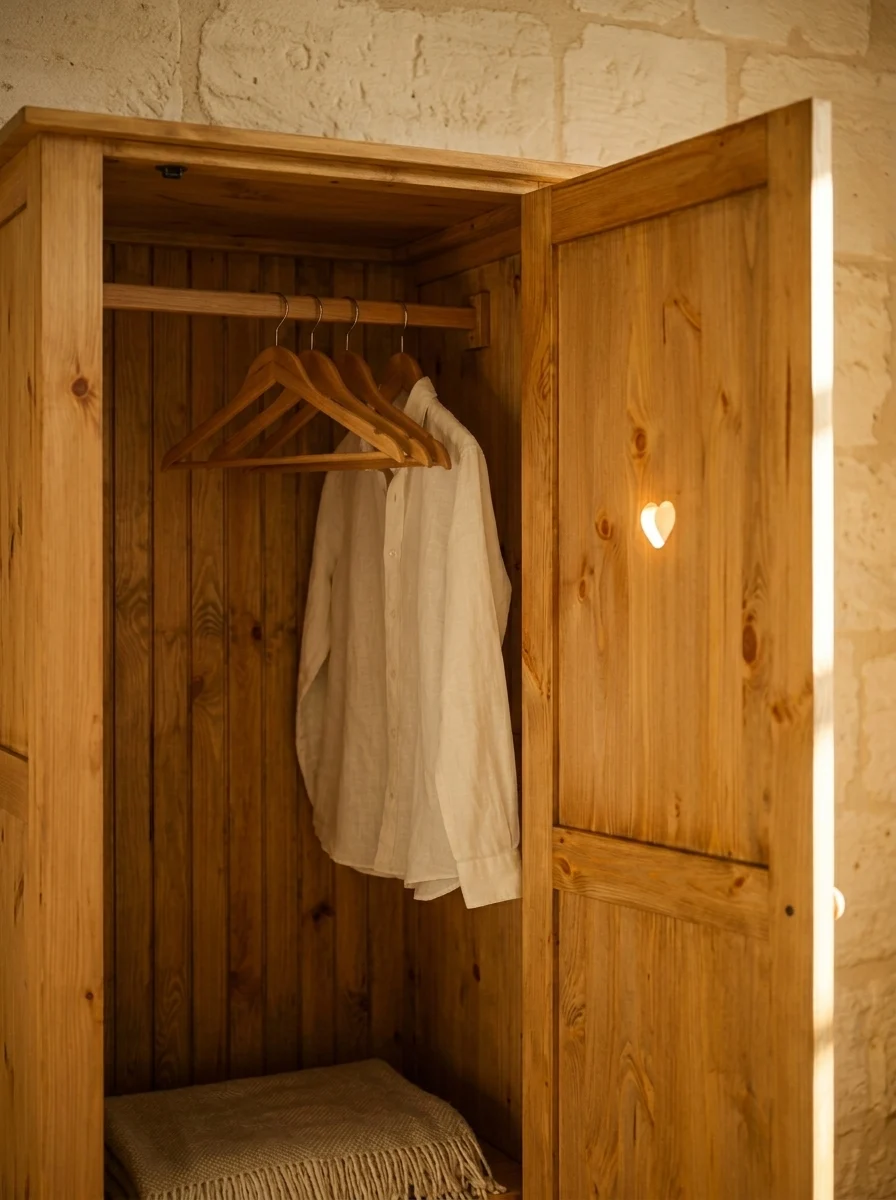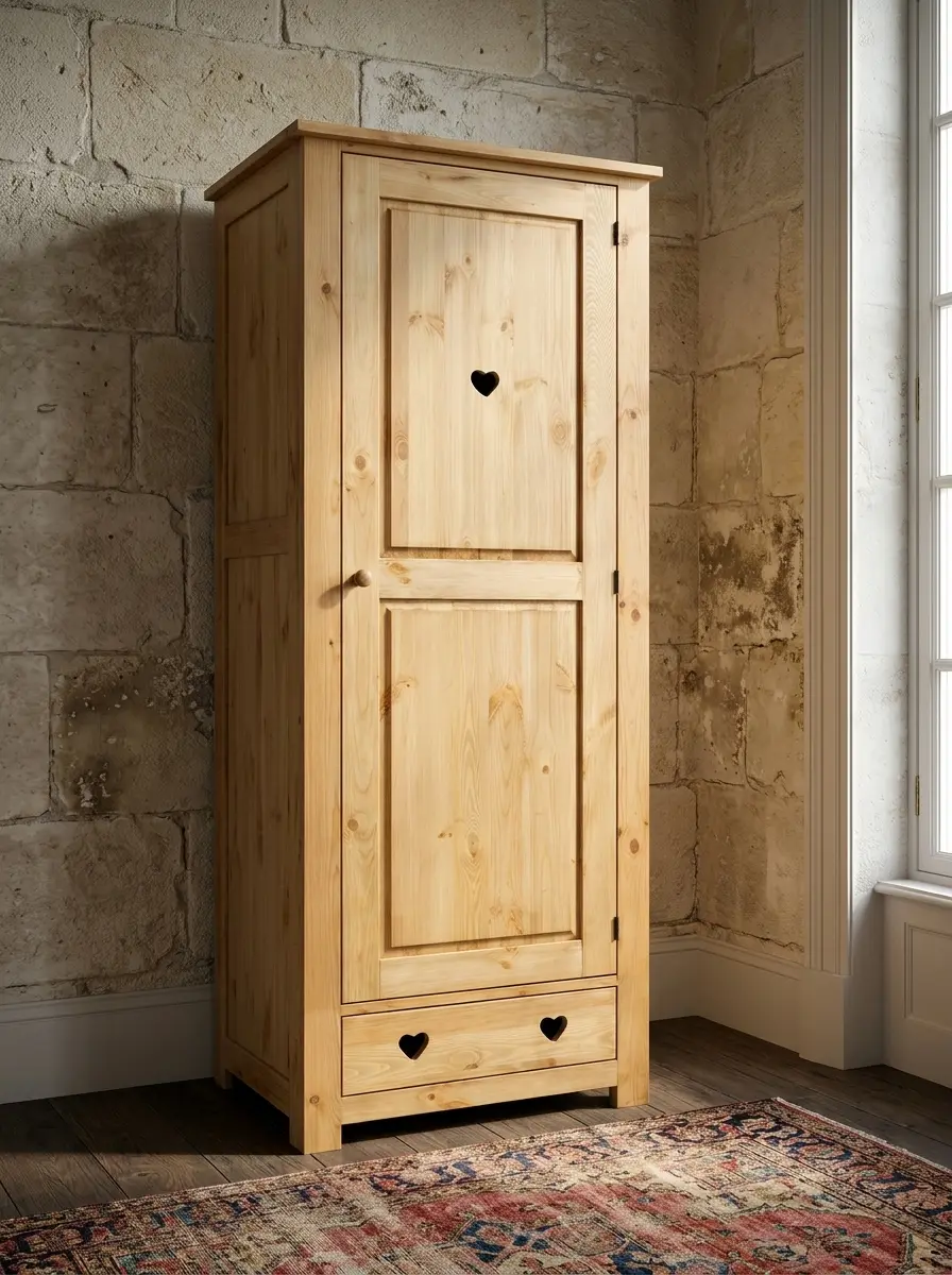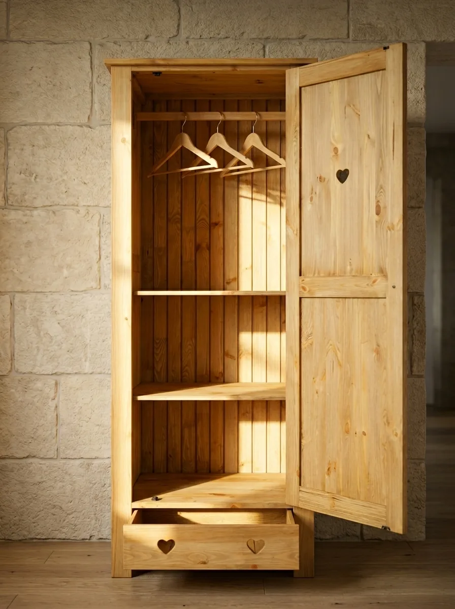 Шкаф изготовлен из массива сосны.