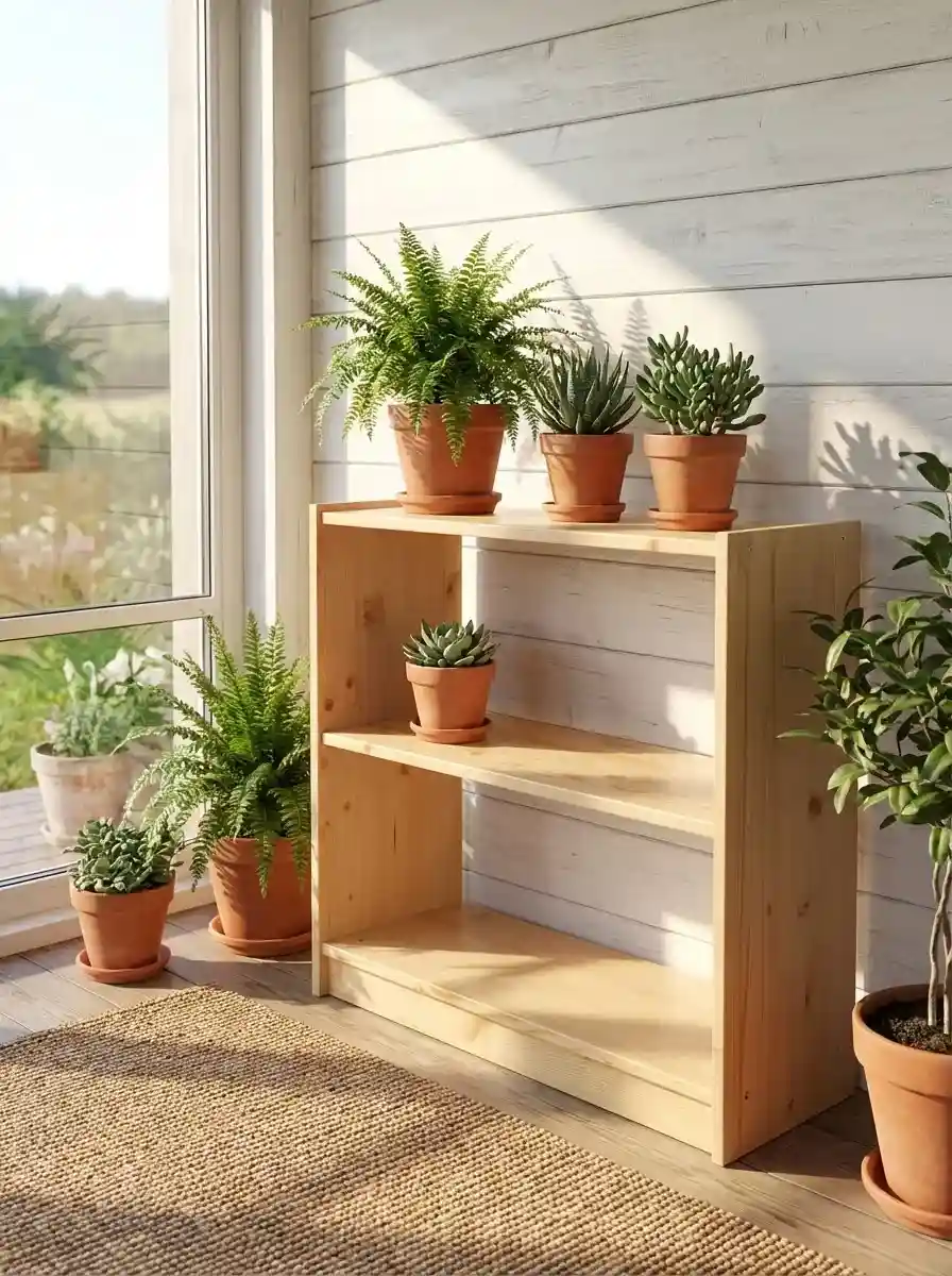 Стеллаж изготовлен из массива сосны, покрыт бесцветным лаком на водной основе в три слоя, безопасен для здоровья человека и домашних животных. В составе данного вида обработки отсутствую вредные компоненты, лак не вызывает аллергию, мебель сохраняет натуральный цвет и запах сосны. Устойчив к перепадам температуры, идеально подойдёт для загородного дома, дачи и даже для бани, веранды. Древесина сосны очень хорошо переносит перепады температуры и влажности. Полки стеллажа по высоте не переставляются. Задней стенки стеллаж не имеет. Поставляется в разобранном виде, инструкция и фурнитура в комплекте.