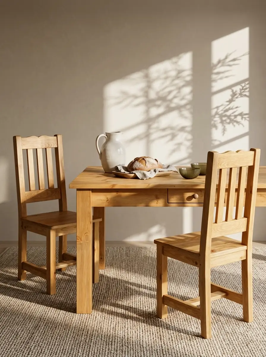 Стол изготовлен из массива сосны.