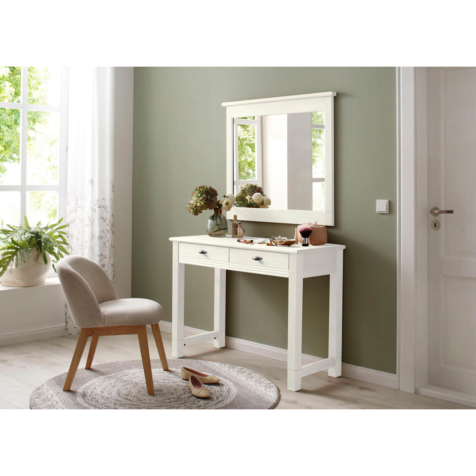 Стильный светлый туалетный стол из коллекции “Рауна” будет выгодно смотреться в спальне или личном кабинете.
