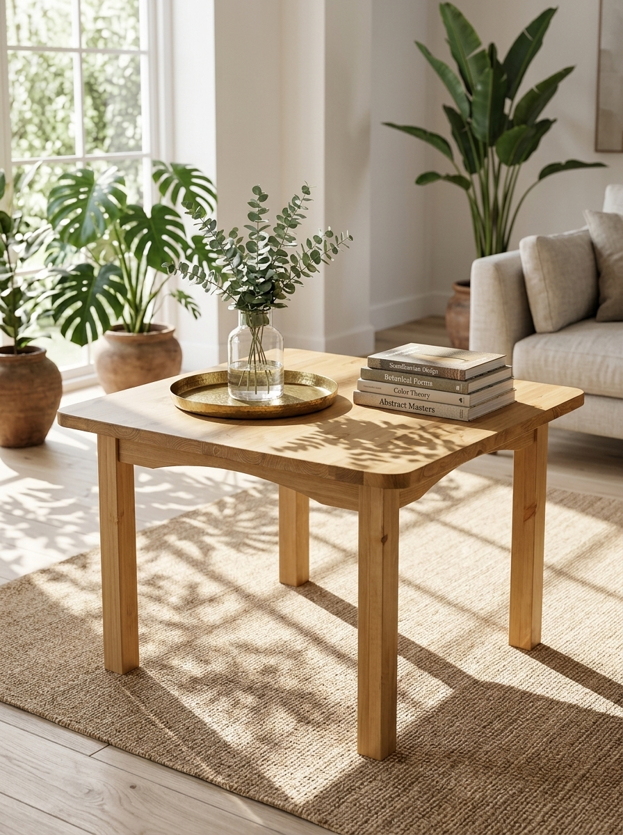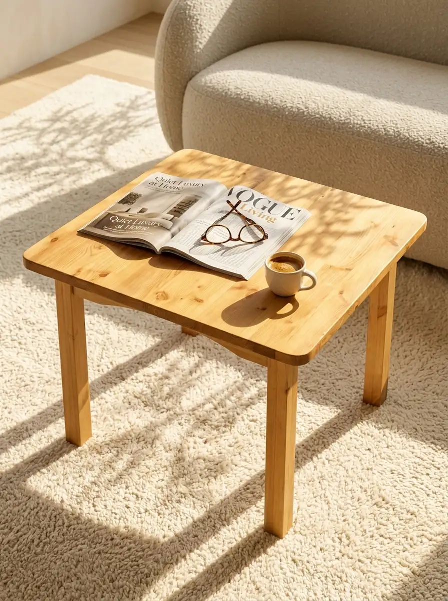 Стол изготовлен из массива сосны.