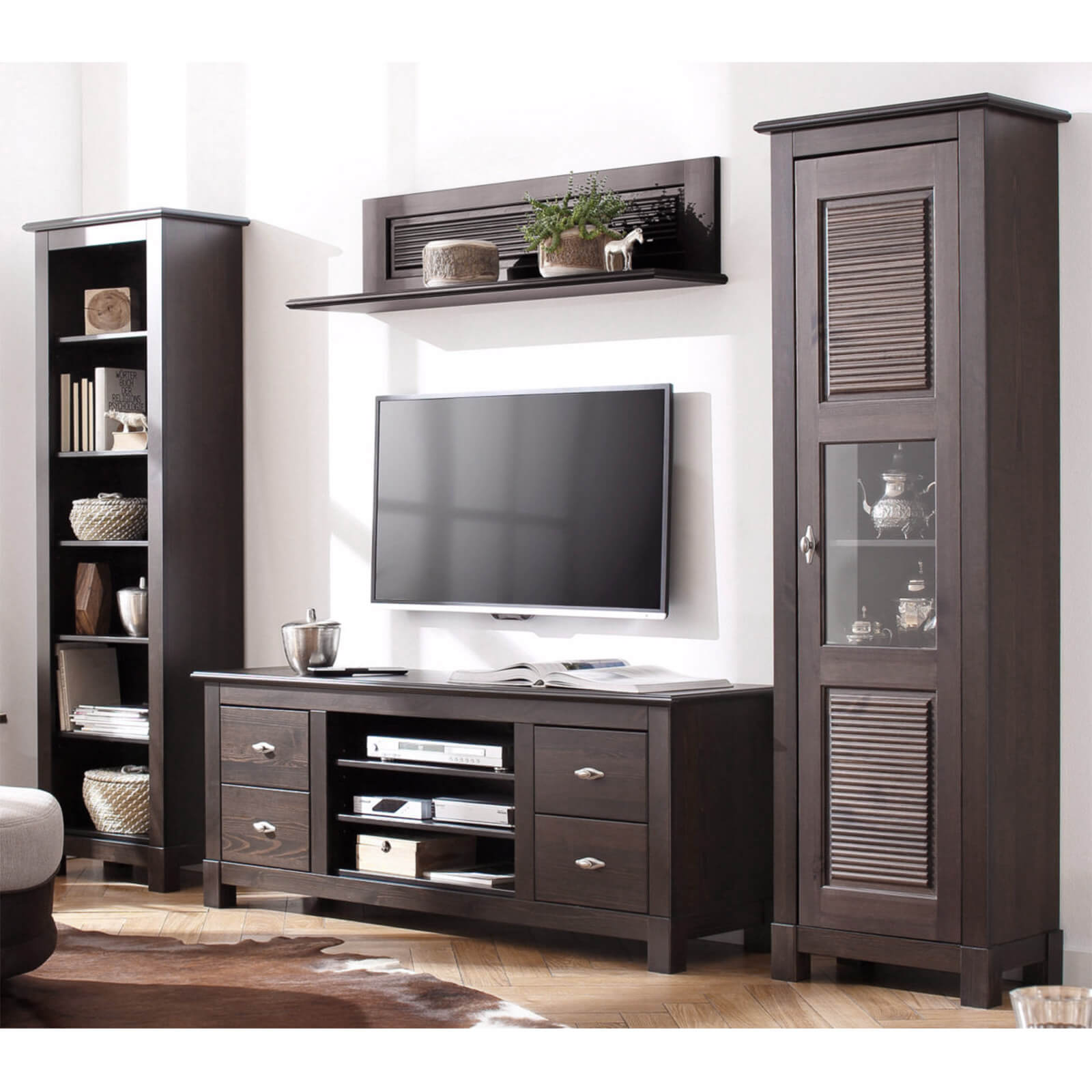 Тумба ТВ "Рауна" 149x60x42 (колониал) из массива сосны Тумба для ТВ из коллекции “Рауна” подходит практически для любой модели телевизора, вне зависимости от габаритов или дизайна. Ее назначение можно назвать универсальным: по бокам расположено четыре выдвижных ящика, посередине - полки для открытого хранения. Приобретение данного изделия позволит правильно использовать имеющееся пространство. Особенности Размеры: 149 x 60 x 42 см; В основе - натуральная сосна; Фурнитура входит в комплект; Вариант в цвете “колониал”. Особенности покрытия Высокое качество этой мебели объясняется не только использованием натуральной древесины, но и грамотной ее обработкой. Она выполнена с помощью водных лаков и красок, которые защищают структуру дерева от повреждения влагой, плесенью или грибками. При этом соблюдены все нормы безопасности, предусмотренные международным сообществом: такие составы пригодны даже для изготовления детских игрушек.