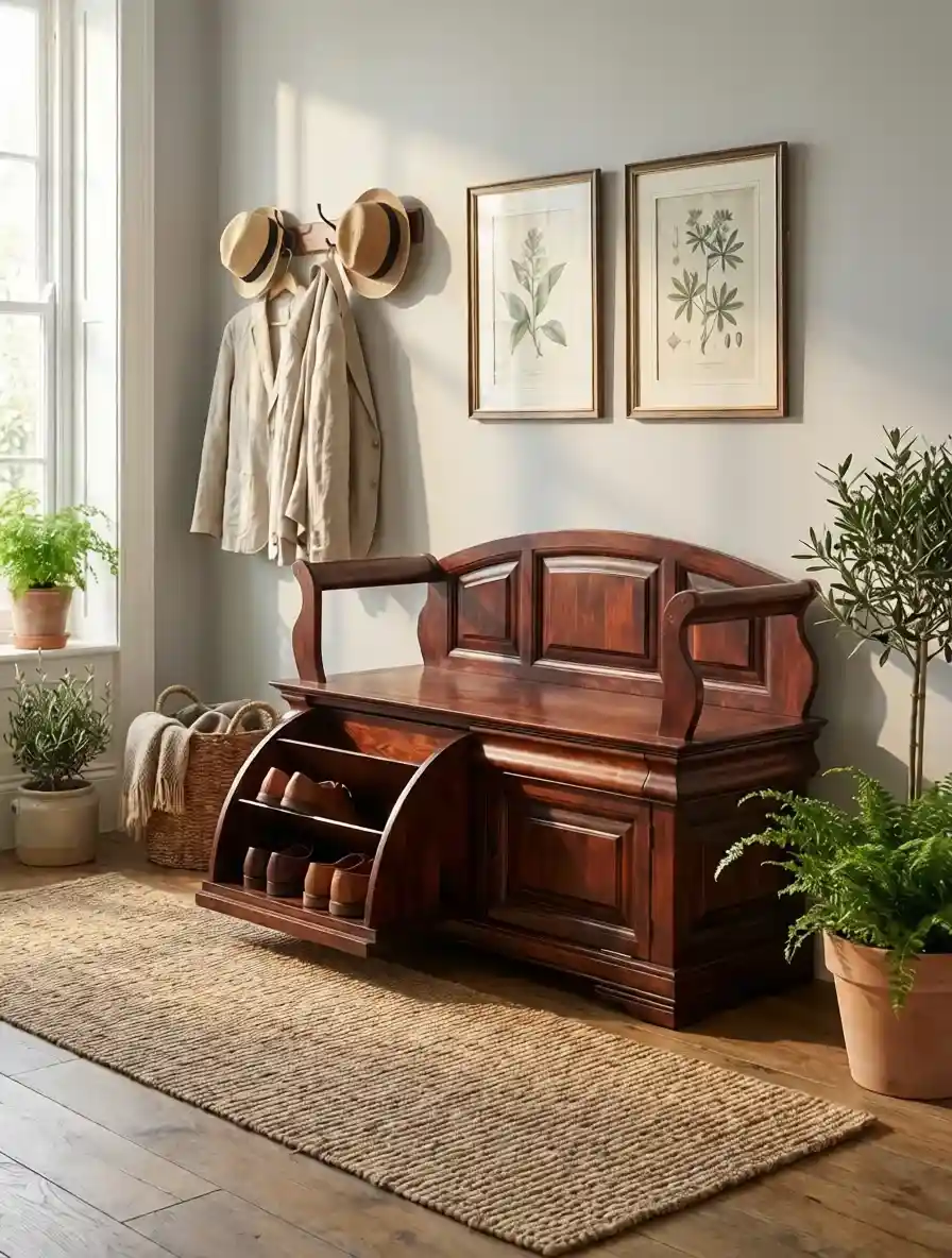 Скамья имеет два откидных ящика для обуви, по три полки в каждом. Размеры скамьи 1194х472х740 мм, вес 45 кг. Поставляется в собранном виде, гарантийный срок 1 год. Обратите внимание, что скамья, как и вся коллекция «Луи Филипп», делается на заказ. Сроки изготовления уточняйте у наших продавцов в салонах или по телефону на сайте.