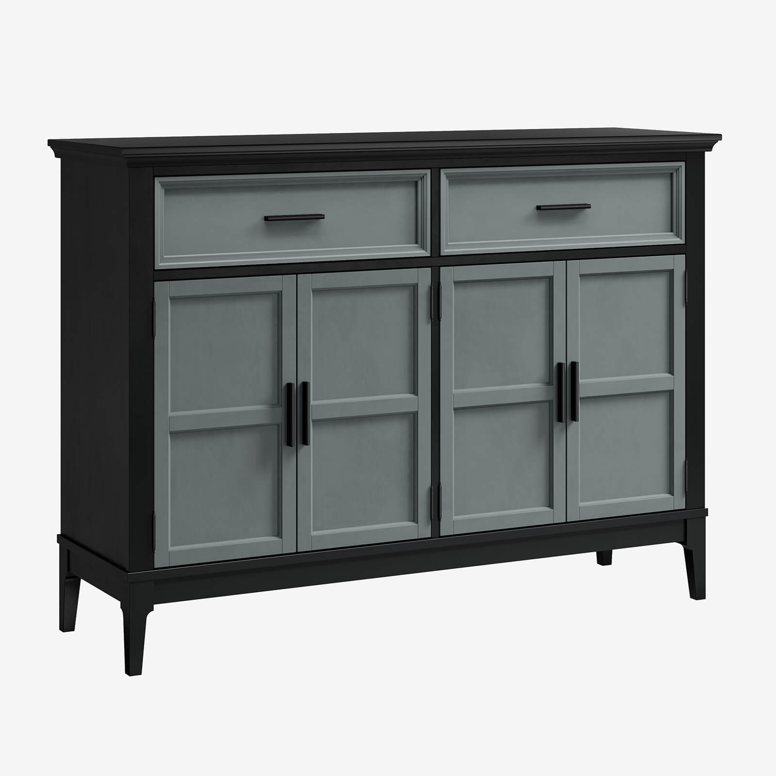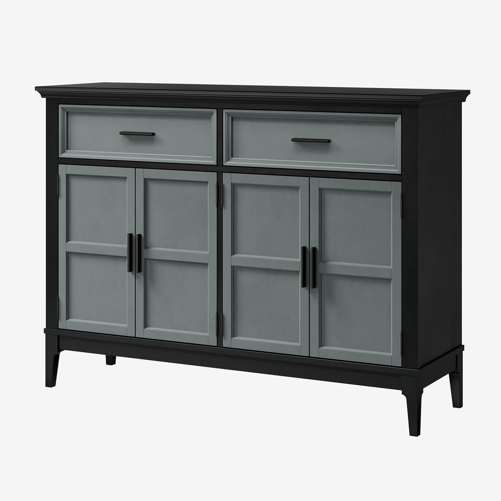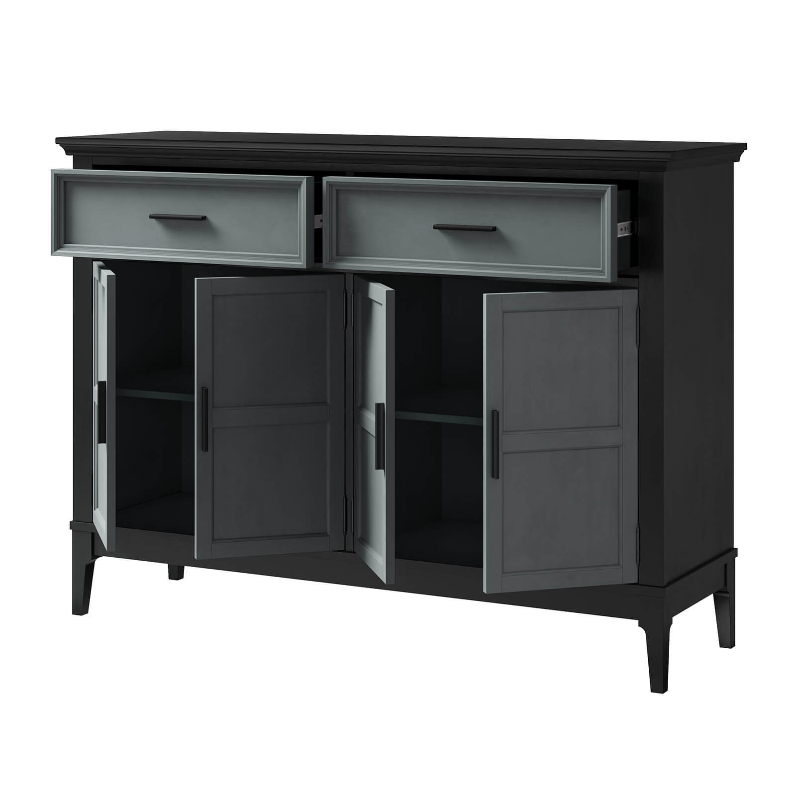 Состоит из двух вместительных отделений с полками за распашными дверками сверху два широких выдвижных ящика.