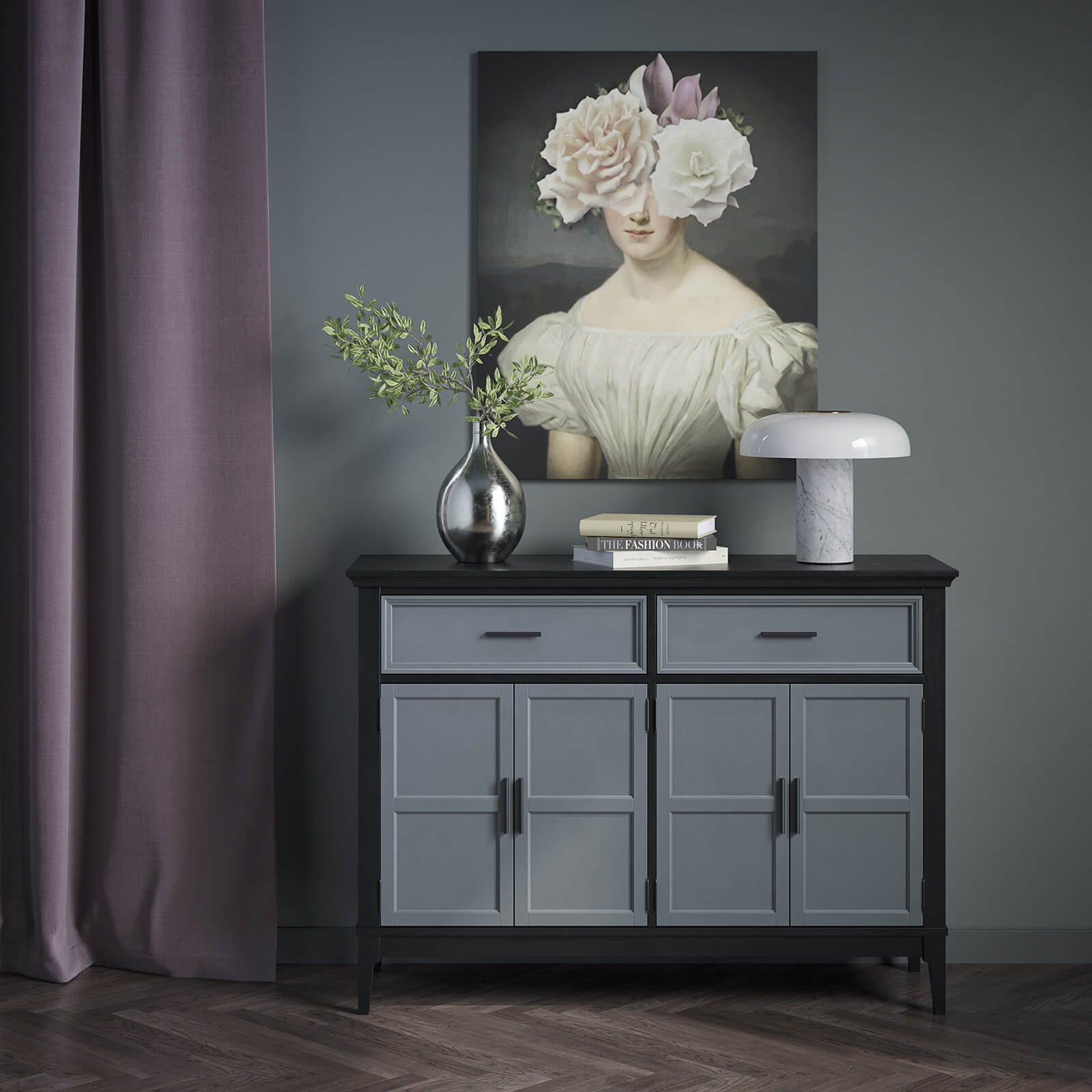 Модель в цвете: «белый лак», «белый лак-антик », «серый 7042-антик », «блэк 9 », «блэк 9-серый 7042 ».
