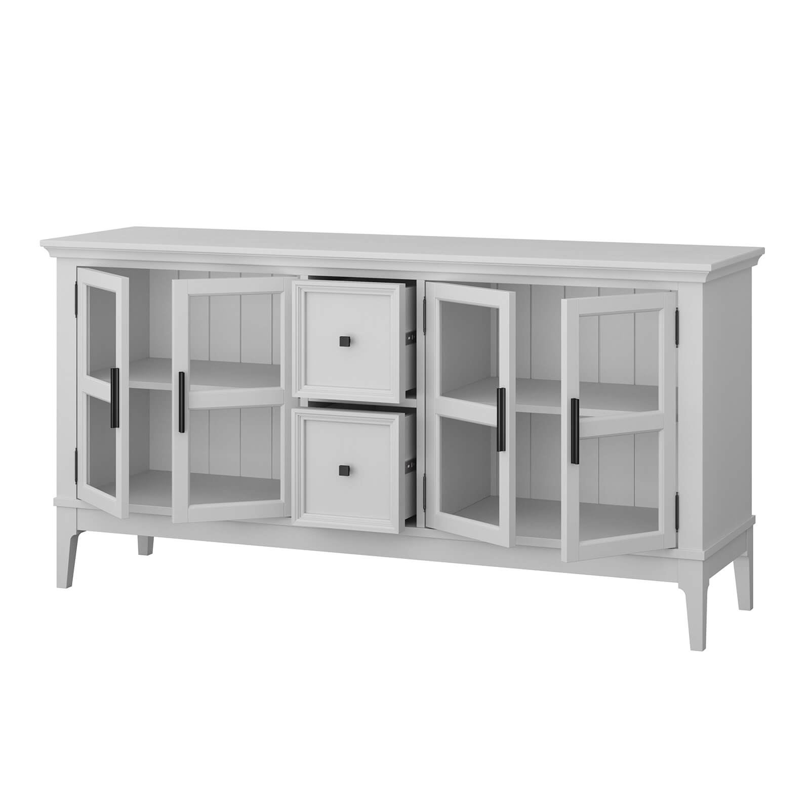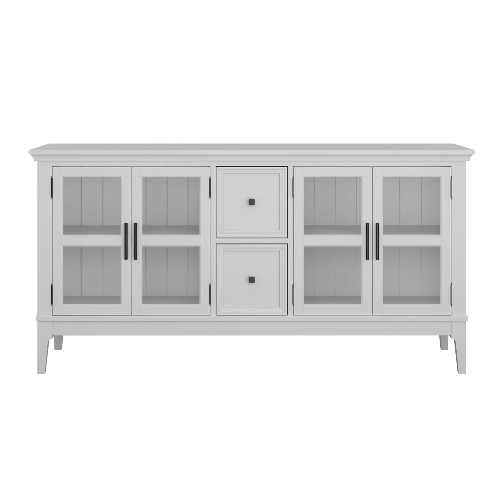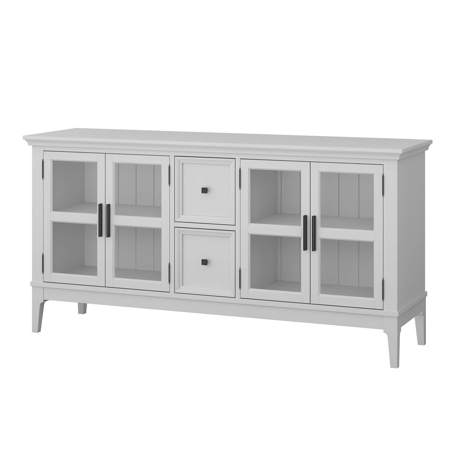 Предлагаем Вам привлекательную тумбу для ТВ «Квадро-С» 42 из массива сосны для гостиной или спальни. Тумба ТВ состоит из двух отсеков за четырьмя стеклянными дверками и двумя выдвижными ящиками по середине. Внутри две широкие полки.