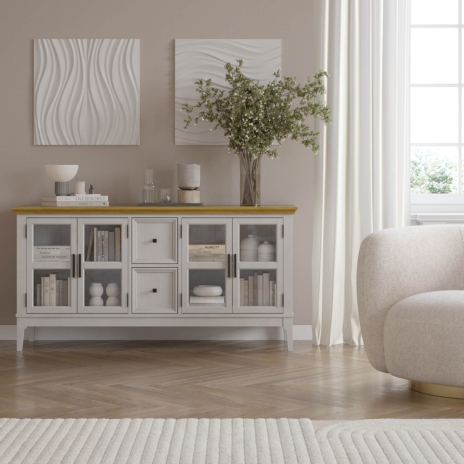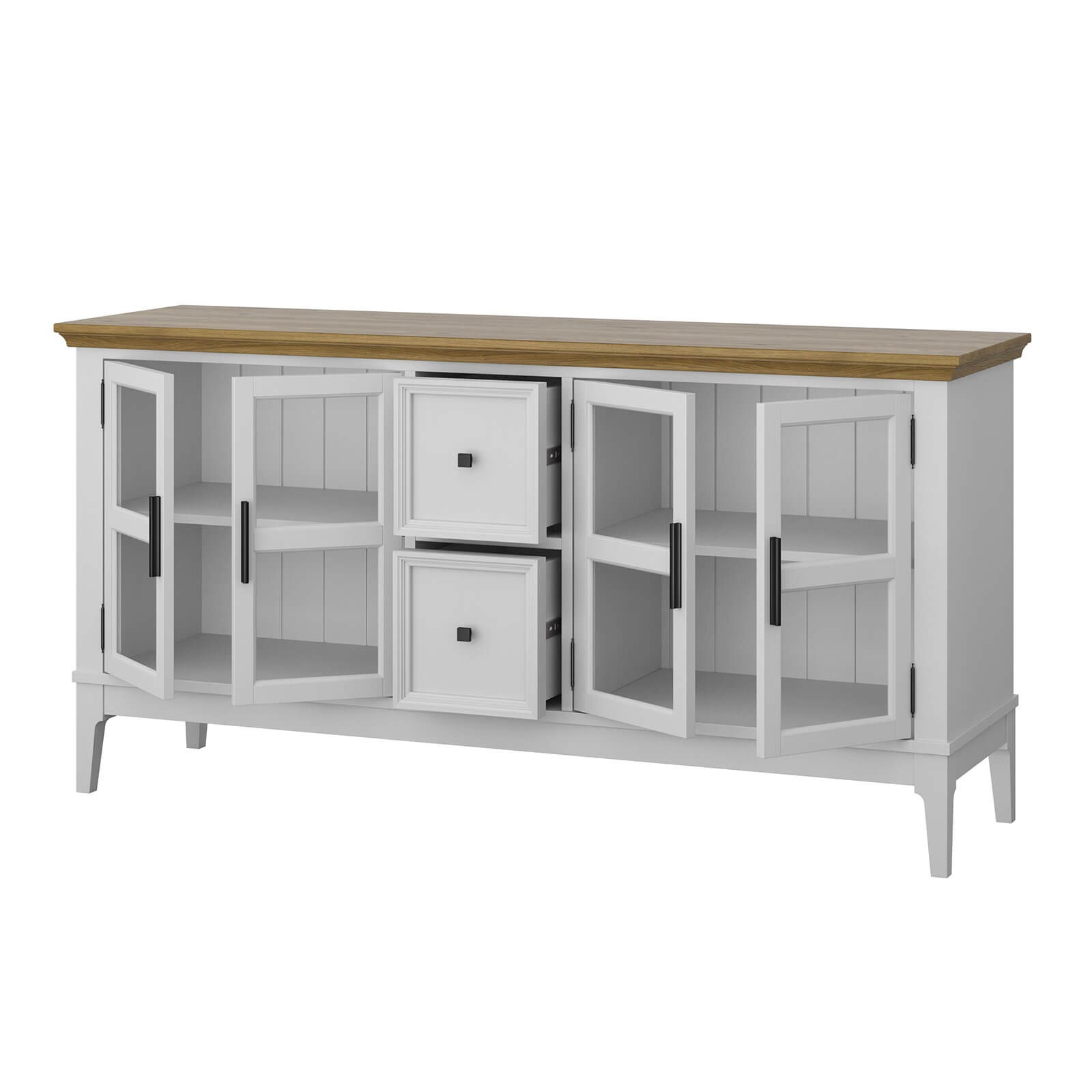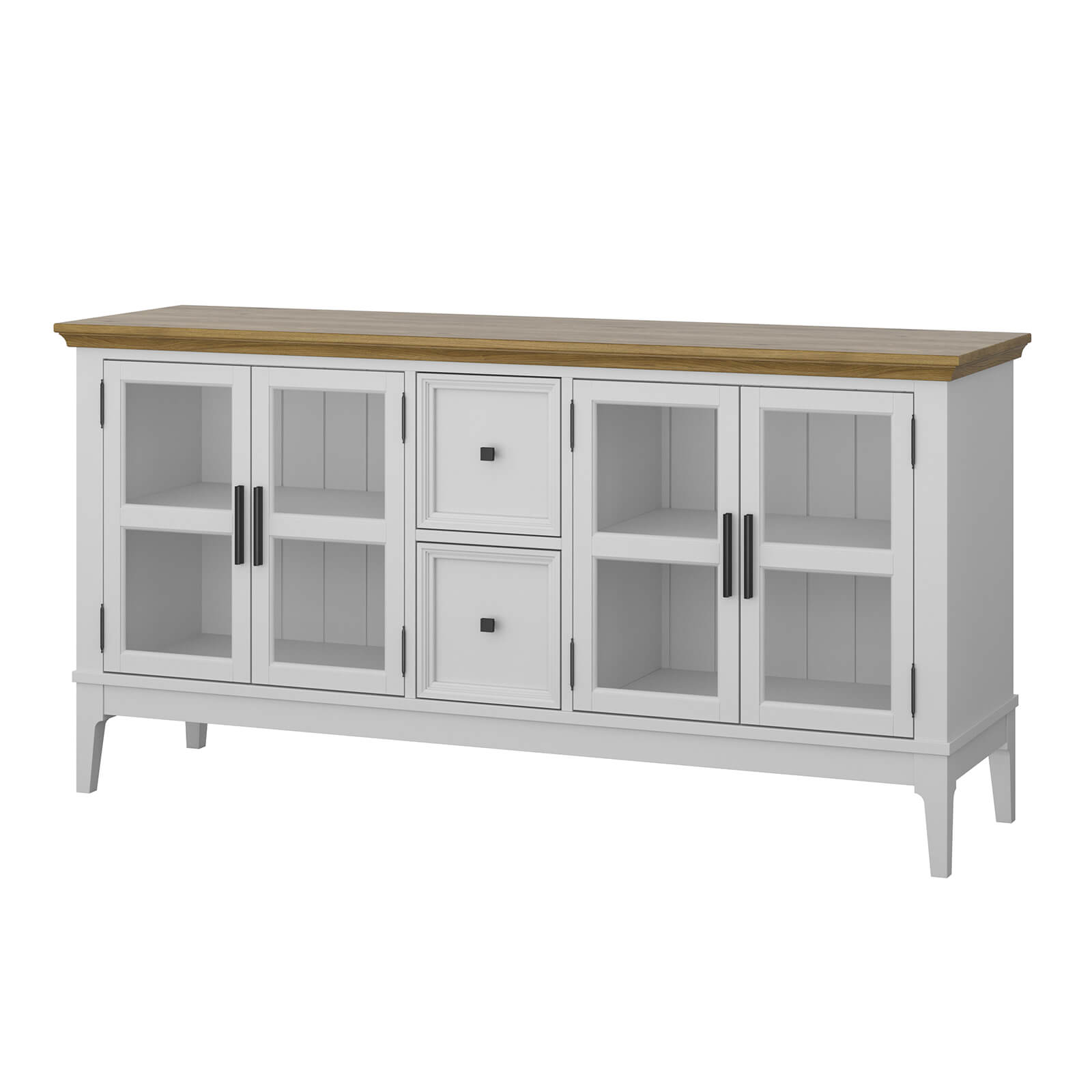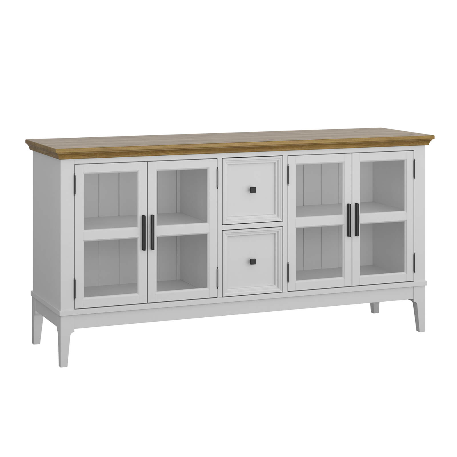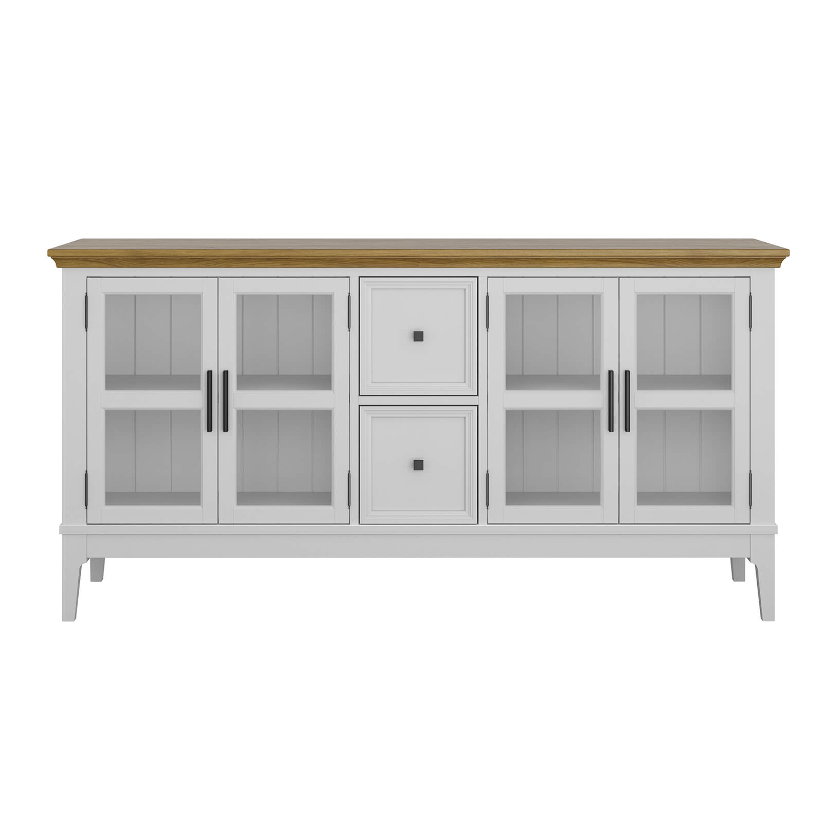 Предлагаем Вам привлекательную тумбу для ТВ «Квадро-С» 42 из массива сосны для гостиной или спальни. Тумба ТВ состоит из двух отсеков за четырьмя стеклянными дверками и двумя выдвижными ящиками по середине. Внутри две широкие полки.