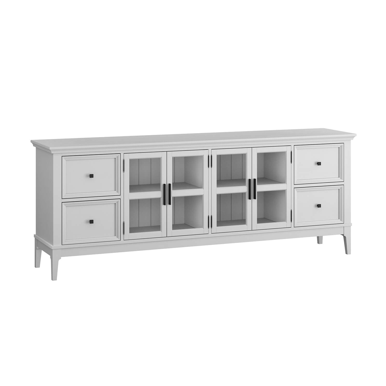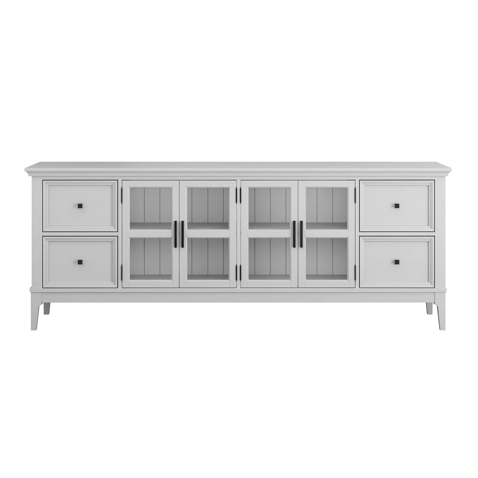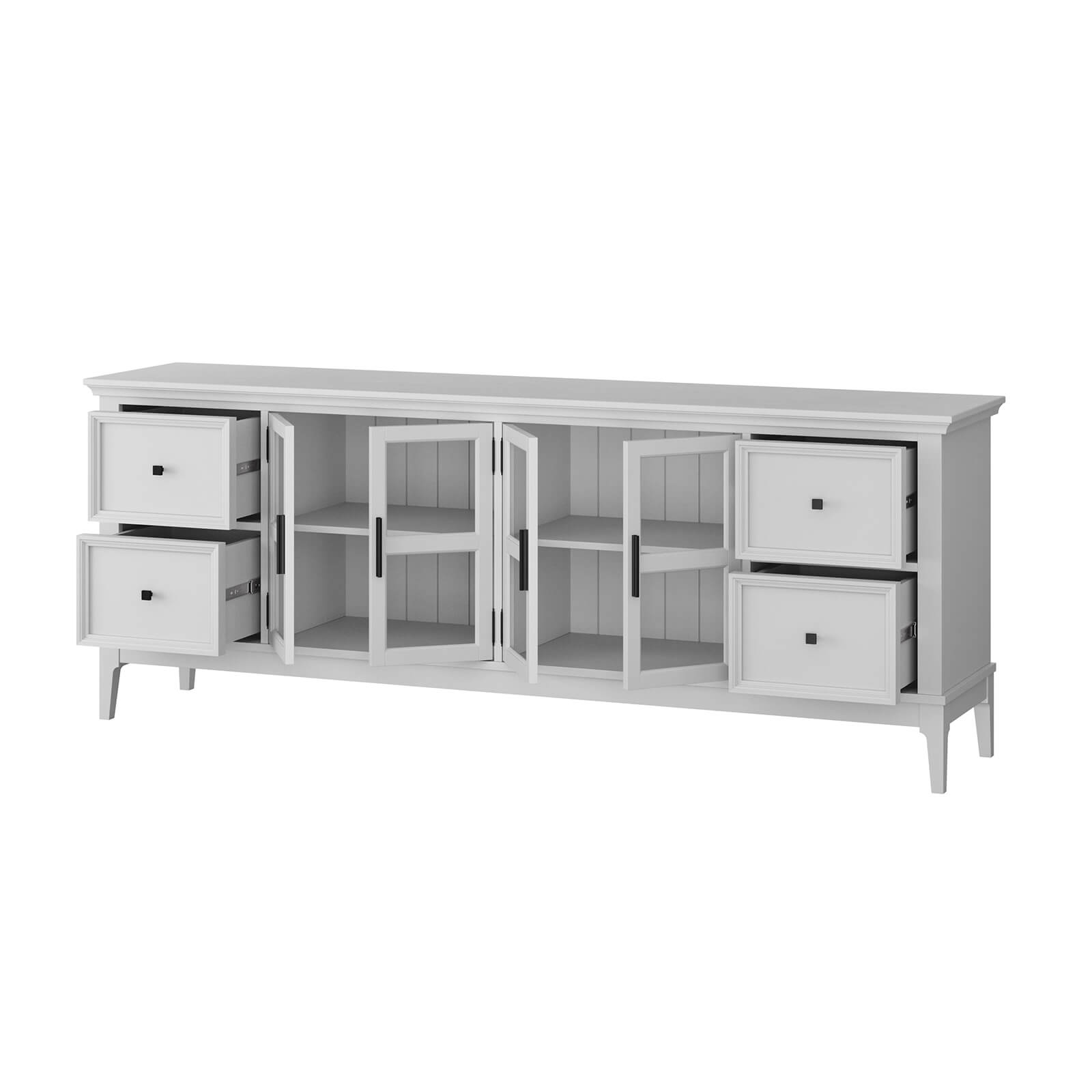 Предлагаем Вам привлекательную тумбу для ТВ «Квадро-С» 42 из массива сосны для гостиной или спальни. Тумба ТВ состоит из двух отсеков за четырьмя стеклянными дверками и четырьмя выдвижными ящиками по бокам. Внутри две широкие полки.