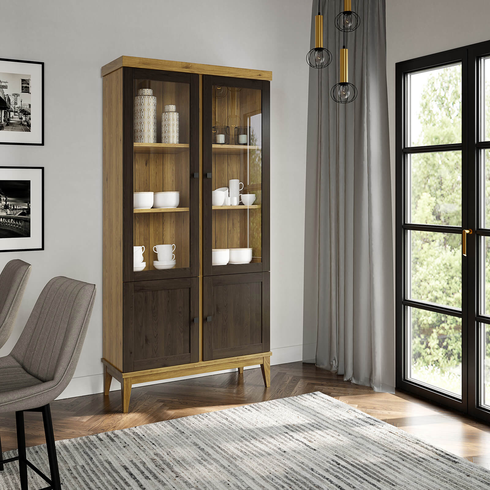 Этот шкаф выполнен из массива сосны и стекла, что придаёт ему особый шарм и элегантность.