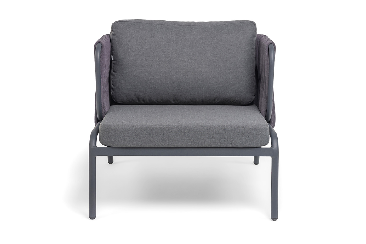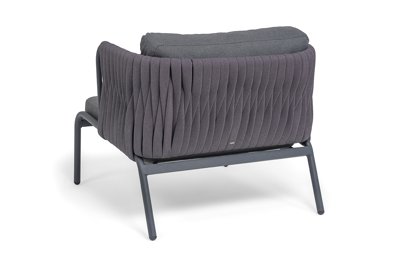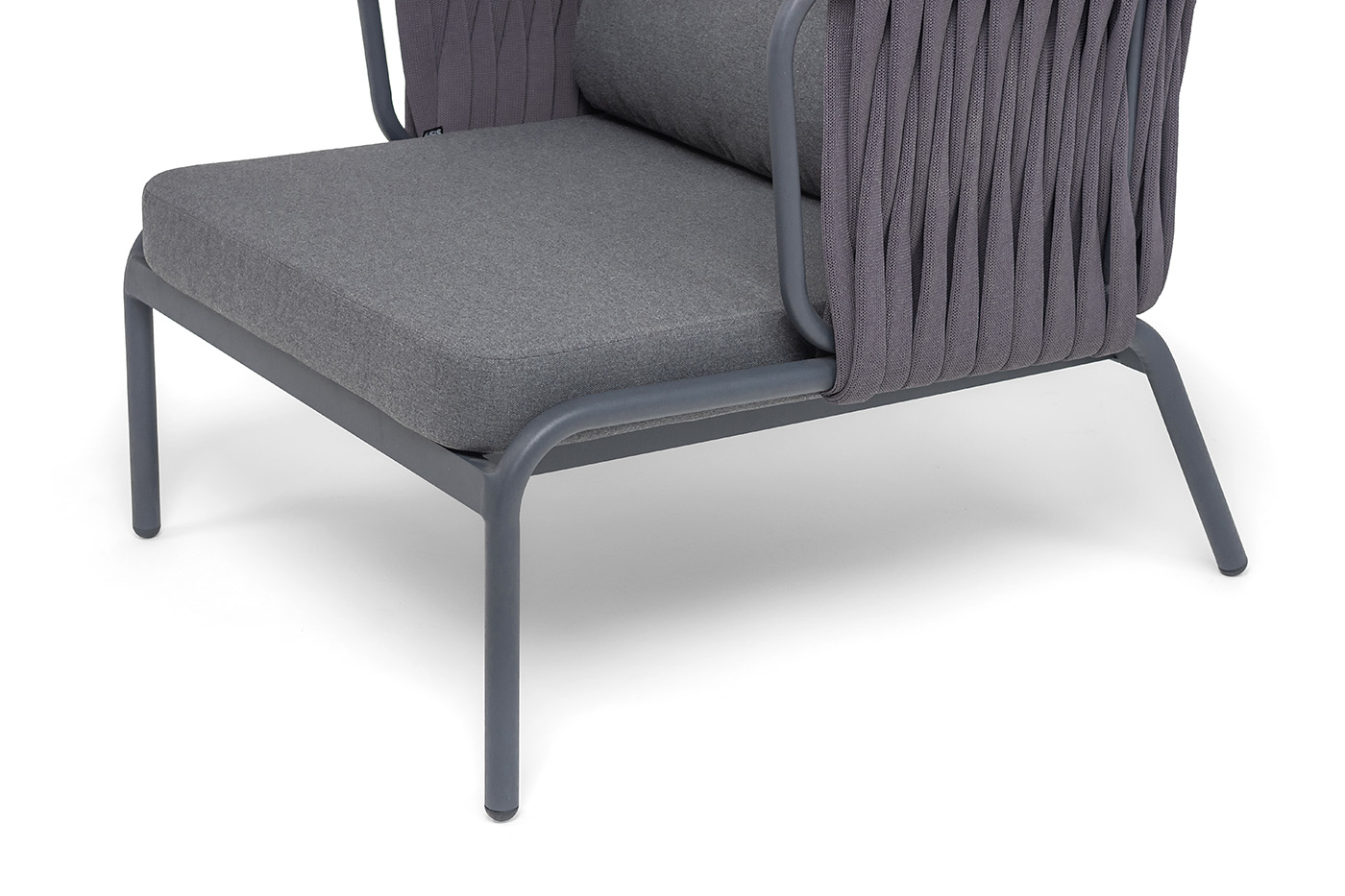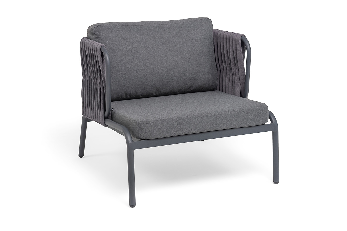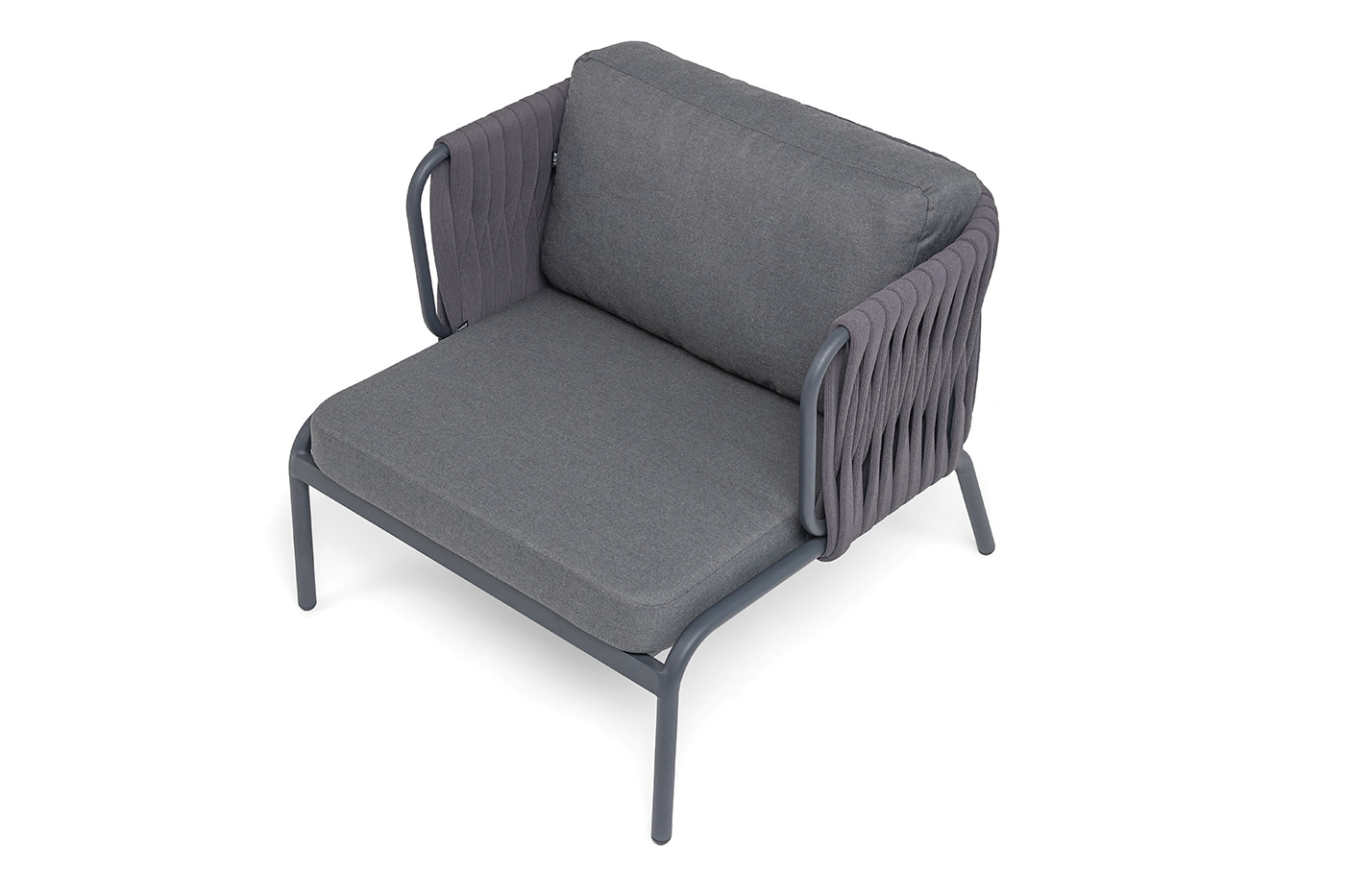 "Ронда" кресло плетеное из роупа, каркас алюминий темно-серый (RAL7024) муар, роуп серый 40 мм tex, ткань темно-серая 027