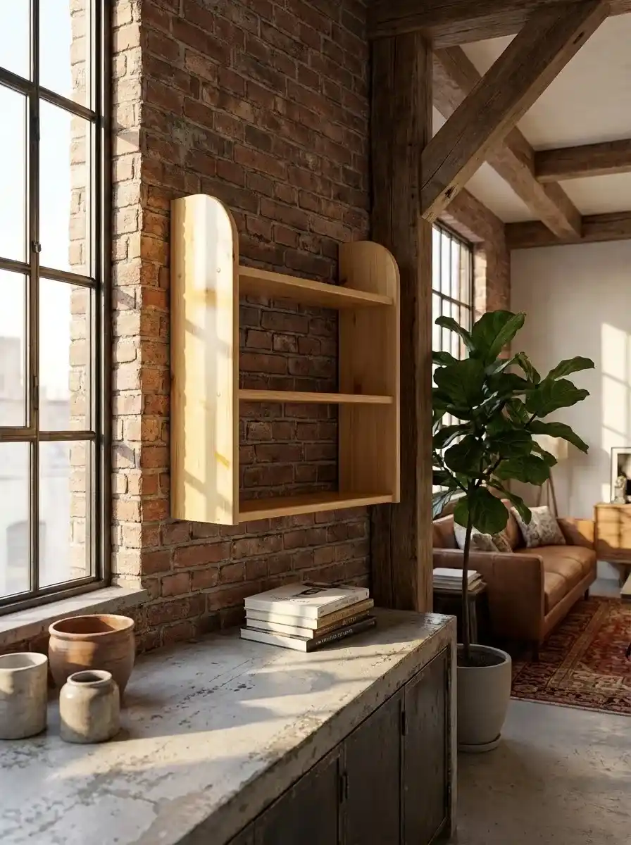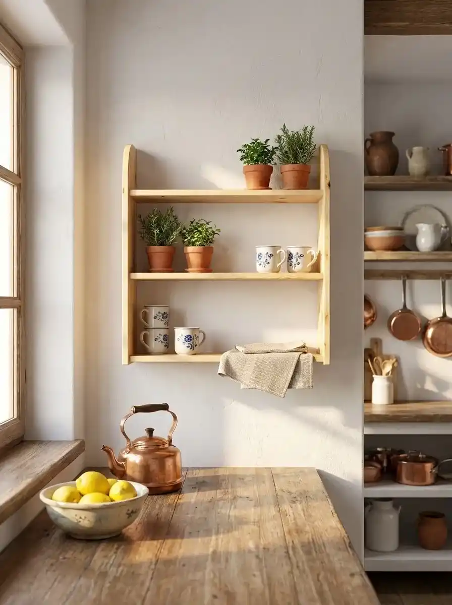 Полка навесная, с креплением к стене ("ушки"). В связи с небольшими размерами полки визуальное пространство не скрадывается. Полка поставляется в разобранном виде, схема сборки и фурнитура в комплекте.