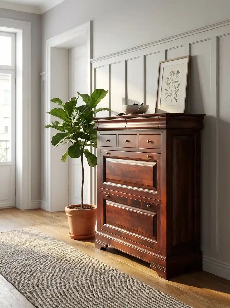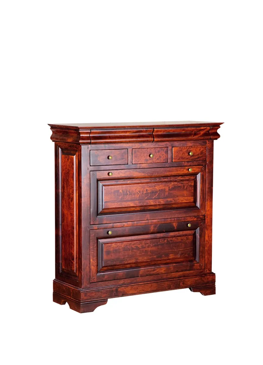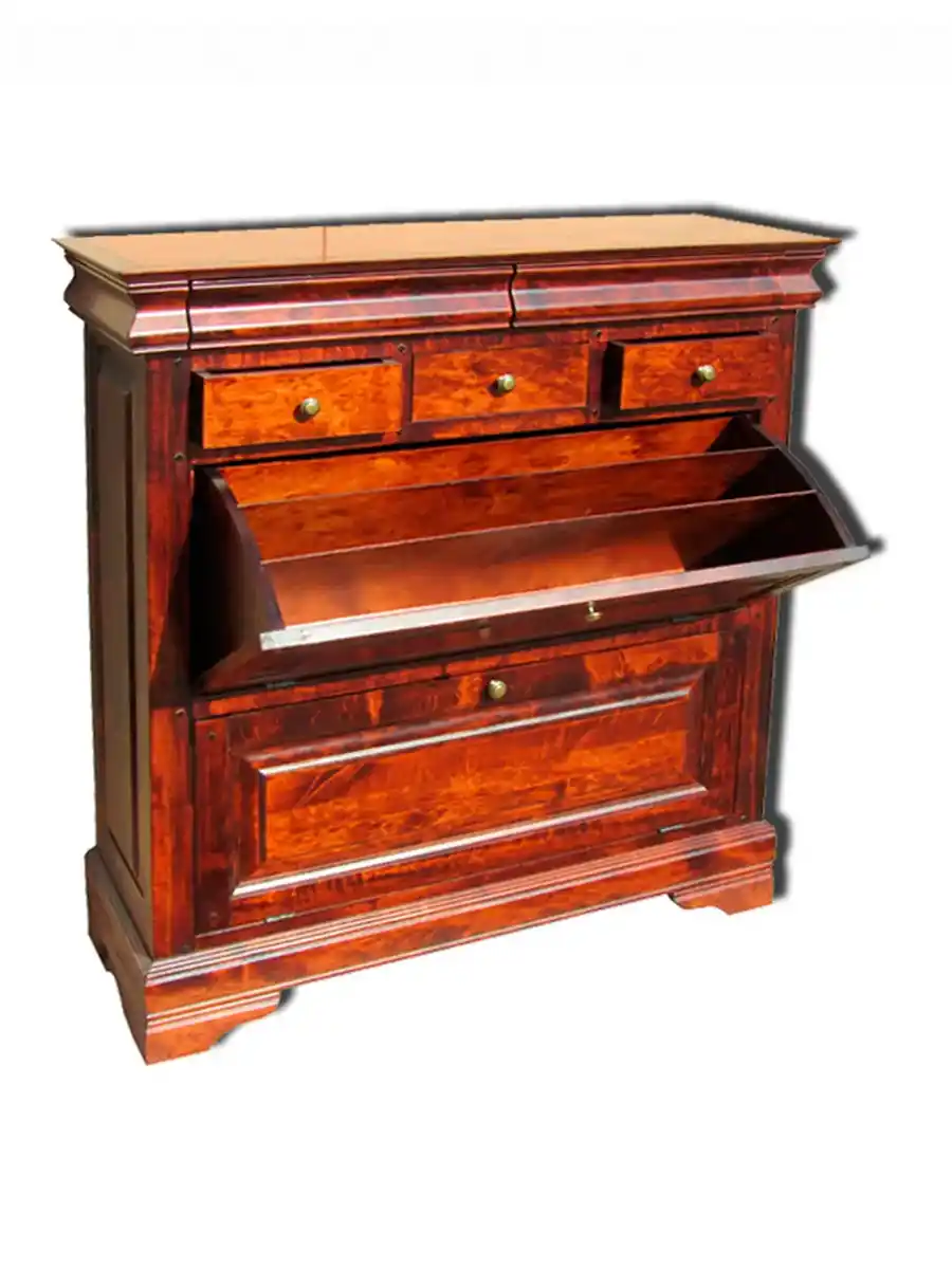 Обувница имеет два откидных ящика для обуви и шесть выдвижных ящиков для обувных аксессуаров, ключей и других вещей. Размеры изделия 1110х410х1170 мм, вес 70 кг. Поставляется в собранном виде, гарантийный срок 1 год. Обратите внимание, что обувница, как и вся коллекция «Луи Филипп», делается на заказ. Сроки изготовления уточняйте у наших продавцов в салонах или по телефону на сайте.