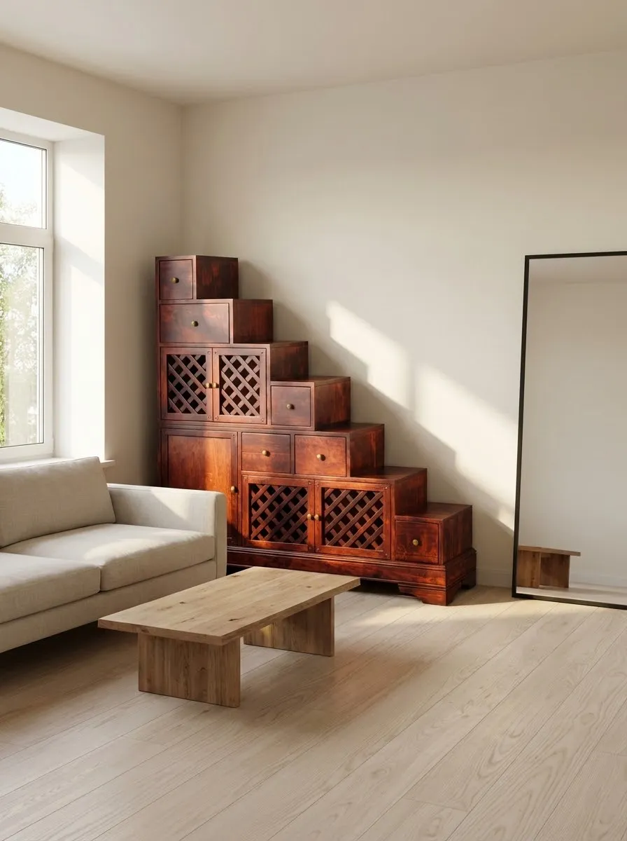 Тумба-лестница «Луи Филипп ОВ 03» изготавливается из массива ольхи или из массива дуба, на выбор. И для ольхи, и для дуба доступно множество вариантов отделки по таблице RAL. Тумба имеет широкие устойчивые опоры.