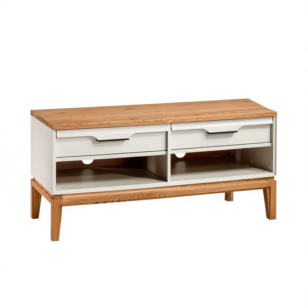 «Гранада» с 2 ящиками и 2 нишами – стильная и удобная тумба ТВ из натурального дерева для гостиной и спальни. Корпус, фасады и стенки ящиков изготовлены из массива сосны – прочного и долговечного натурального материала. Задняя стенка и донья ящиков сделаны из ДВП.