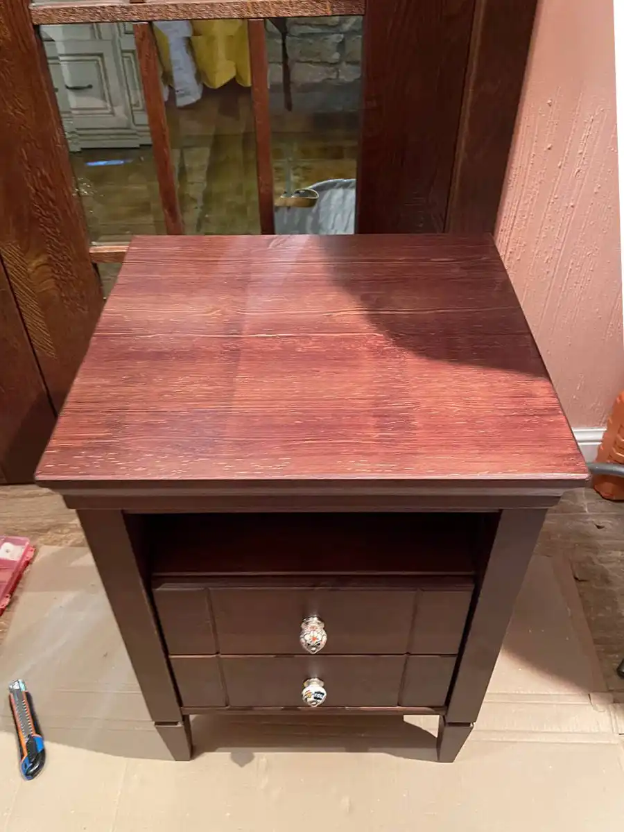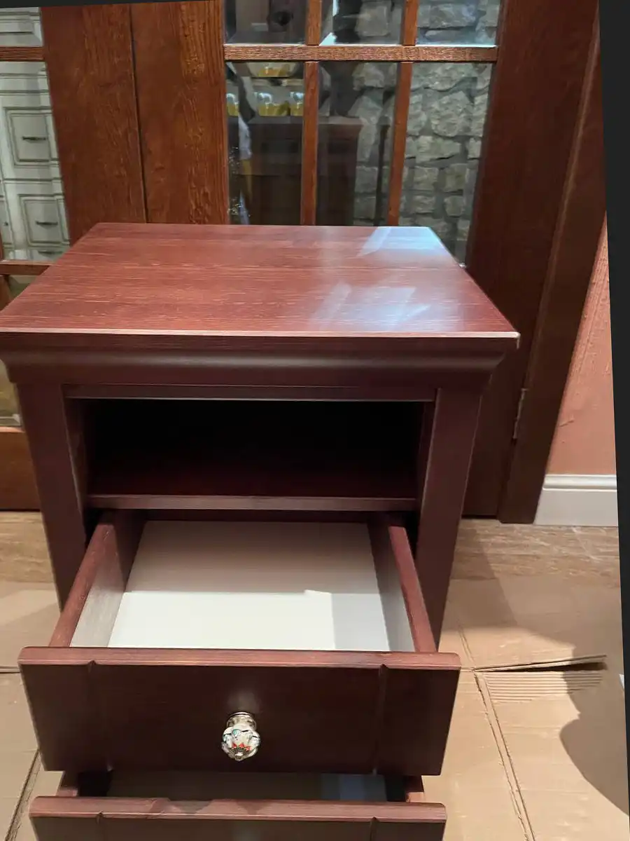 Материал - сосна, задние стенки, дно ящиков - ДВП.