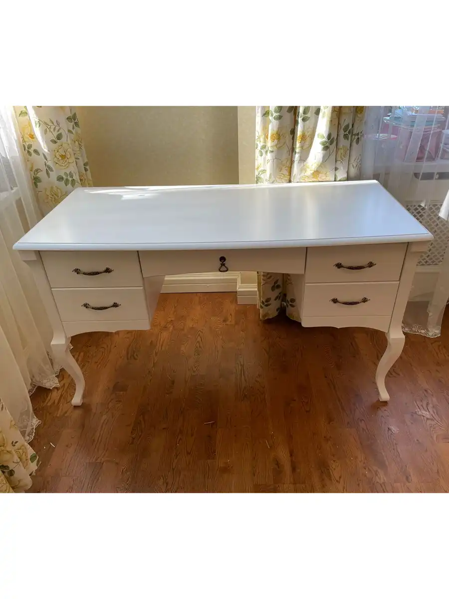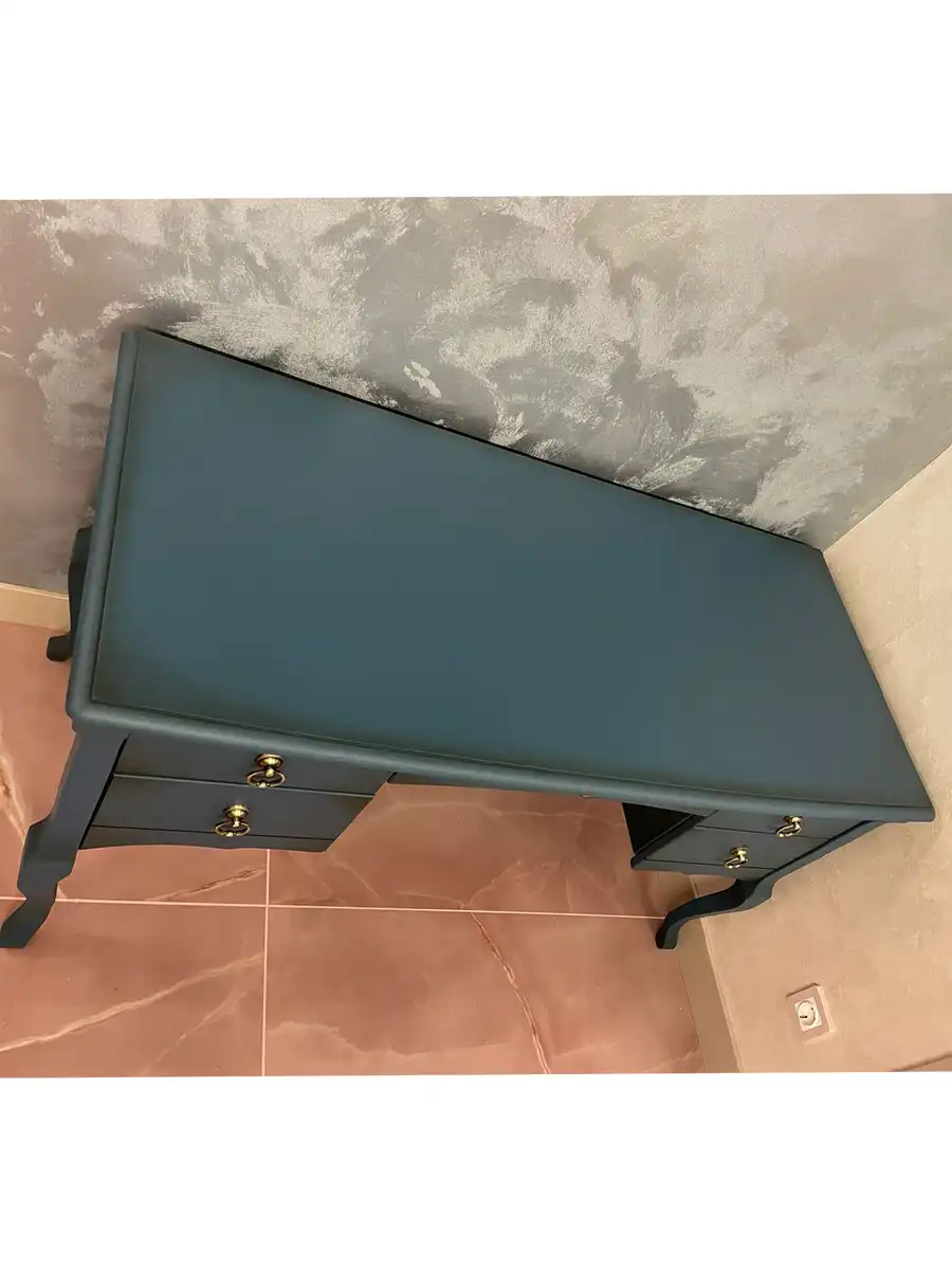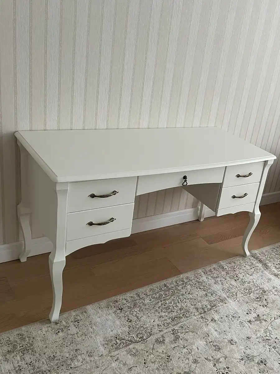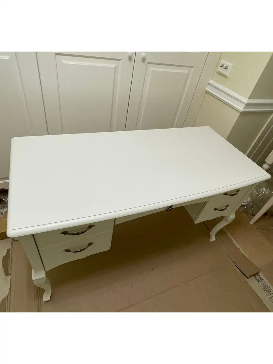 Высокие гнутые ножки стола придают ему элегантный вид. Этот письменный стол доступен в разных цветах отделки.