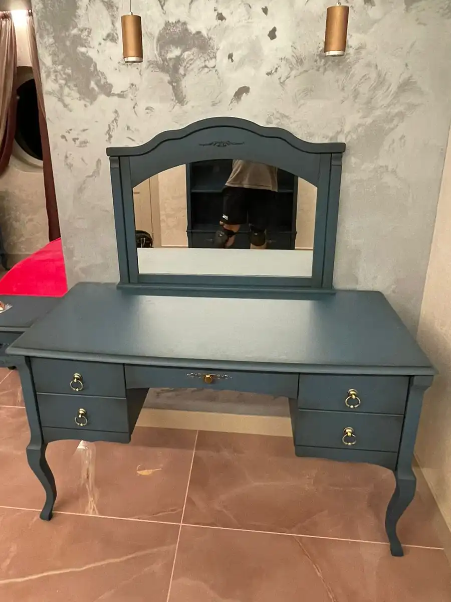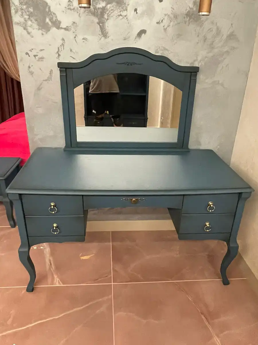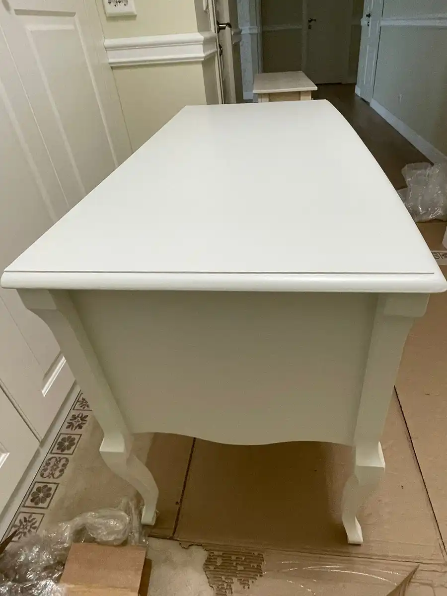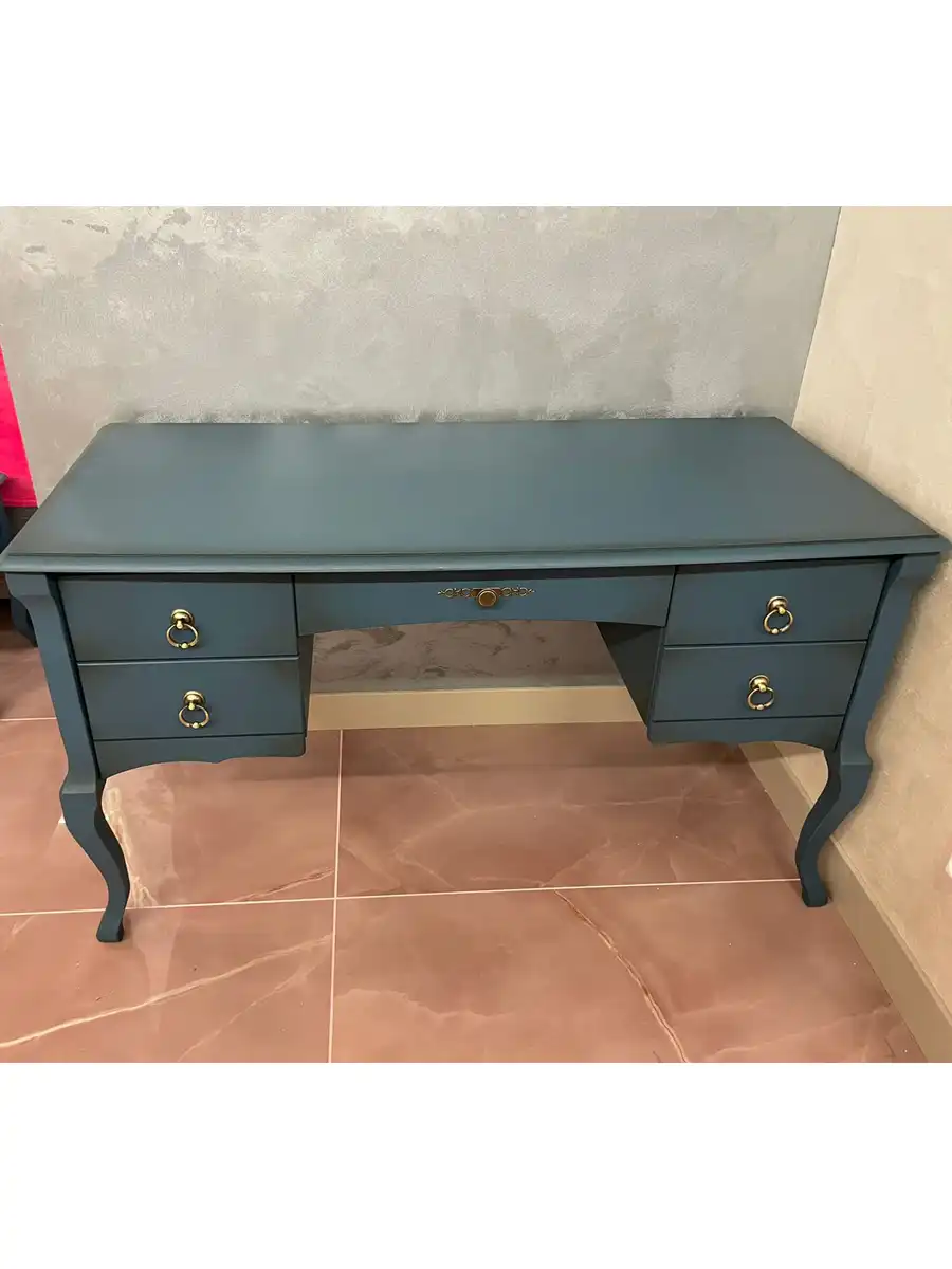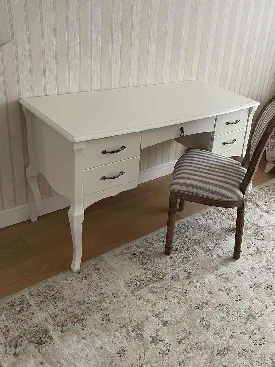Высокие гнутые ножки стола придают ему элегантный вид. Этот письменный стол доступен в разных цветах отделки.