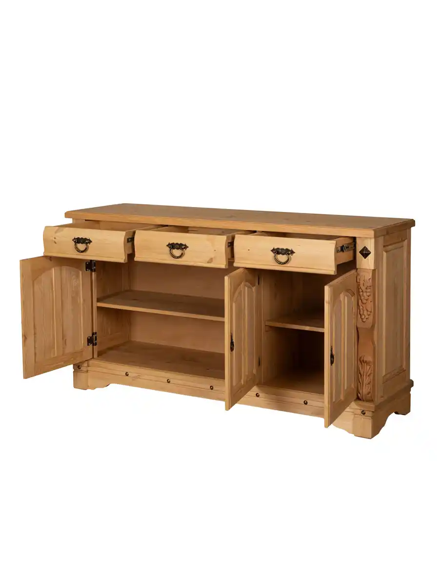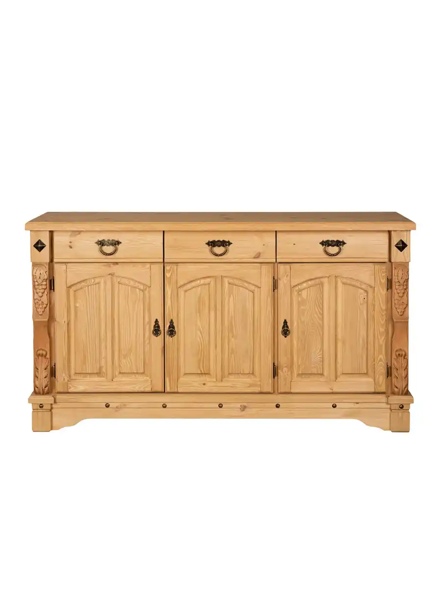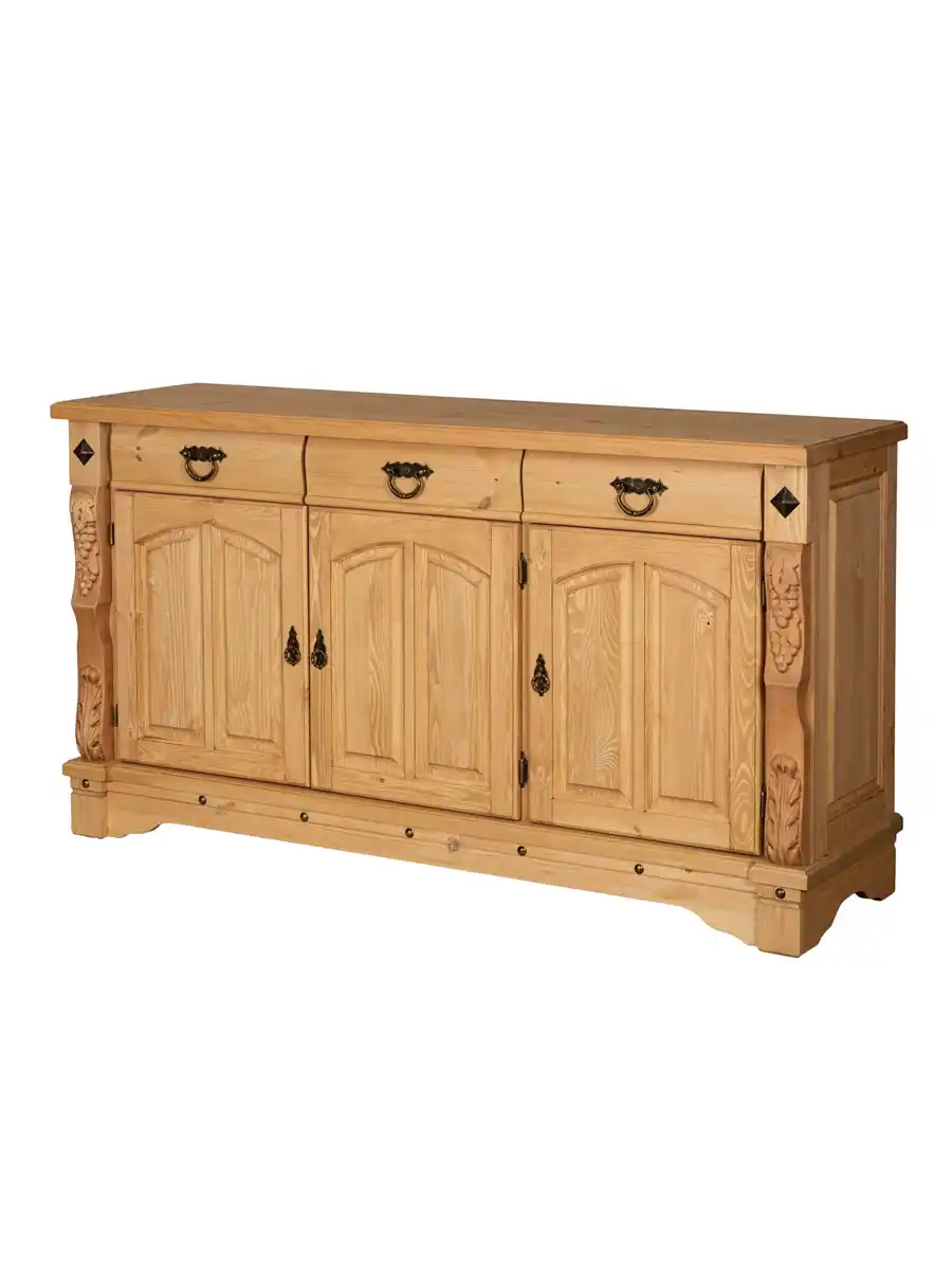 Комод «Викинг GL-05/1» — это особое украшение для вашей кухни или столовой. Выполненный из массива сосны, он подчеркивает аутентичный стиль загородного дома благодаря уникальным резным элементам с гроздьями винограда. Поверхность обработана воском, что придает мебели благородный вид и приятную текстуру. Оригинальный дизайн создан с помощью специально созданных потертостей, следов древоточцев и изящных вставок на фасадах, что делает каждый экземпляр неповторимым.