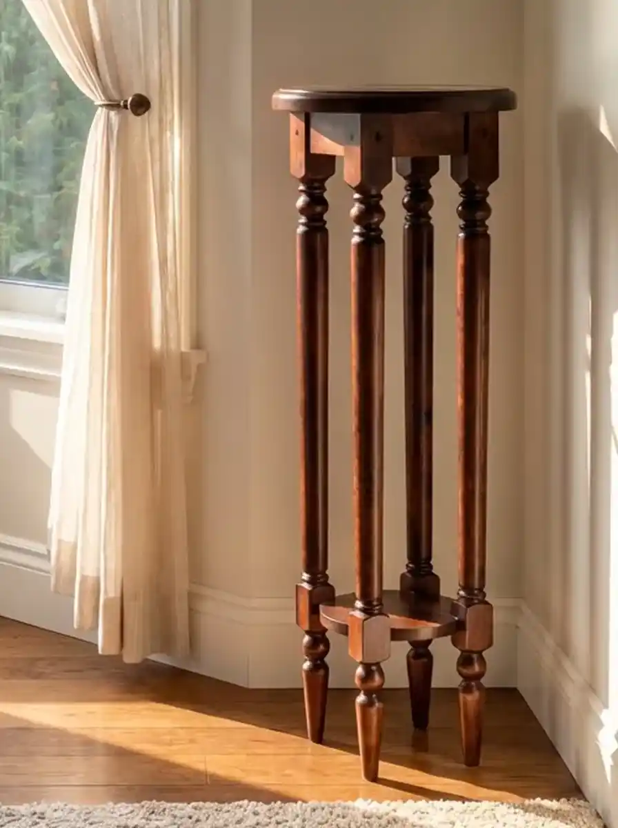 Цветочница «Луи Филипп ОВ 01» изготавливается из массива ольхи или из массива дуба, на выбор. Предмет можно окрасить в любой цвет по таблице цветов RAL. Подставка имеет высокие фигурные ножки, внизу есть дополнительная полка. Размеры изделия 335х335х900 мм, вес 9 кг. Поставляется в собранном виде, гарантийный срок – 1 год.