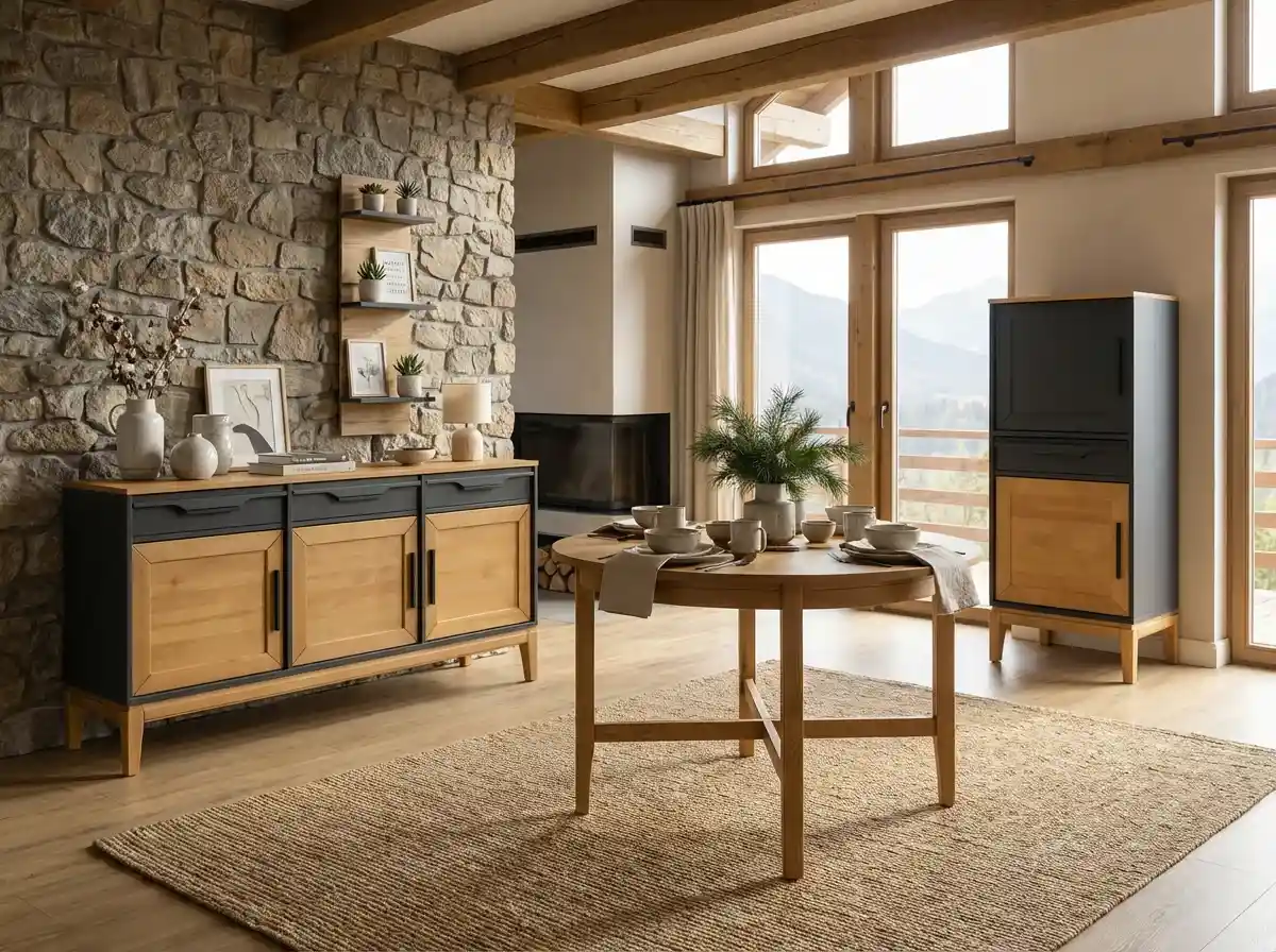 Крышка, нижняя дверца и основание окрашены в цвет «антик», остальные части изделия в сером цвете. Через покрытие цвета антик видна природная текстура сосны. Вы можете купить этот же шкаф для посуды в отделке «белый воск/антик». Он будет естественно смотреться не только на кухне, но и в гостиной. При этом он совместим с предметами в разных стилях: скандинавском, классическом, винтажном, кантри.